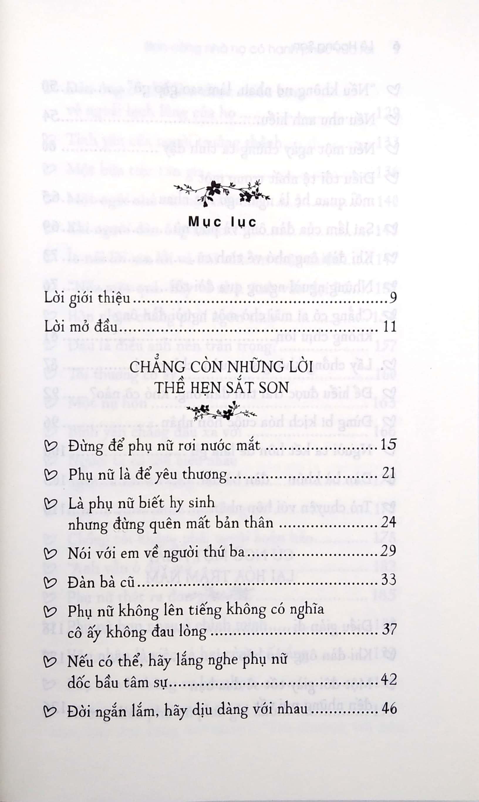 Phụ nữ đã có một mái ấm, điều họ cần chỉ là những cá thể trong ngôi nhà đó đối xử với nhau bằng tình cảm bao dung và giản dị. Họ cần yêu thương, dĩ nhiên rồi, nhưng quan trọng cảm giác đó phải thoải mái và người đàn ông họ yêu chỉ quan tâm vừa đủ để họ không thấy ngột ngạt mà vẫn tin tưởng rằng bản thân xứng đáng được yêu chiều.”