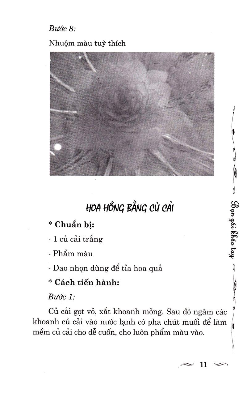 Bạn muốn có những kiểu xếp khăn ăn mới? muốn tự tay làm những kiểu tóc dễ thương, những tấm thiệp tặng mẹ, muốn tỉa những món ăn ngon miệng đẹp mắt? Tất cả những điều đó đều có trong cuốn “bạn gái khéo tay”. Hãy bắt đầu thực hiện ngay hôm nay để có những bất ngờ thú vị cho người thân, và cũng cho chính cuộc sống của bạn.
