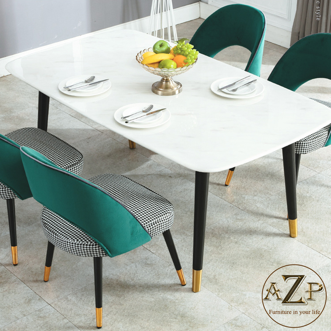 Bàn & Ghế Ăn Mặt Đá Chân Thép Phong Cách Đương Đại Xu Hướng Hiện Nay / Kích Thước 1.2m - 1.4m - 1.6m & 1.8m