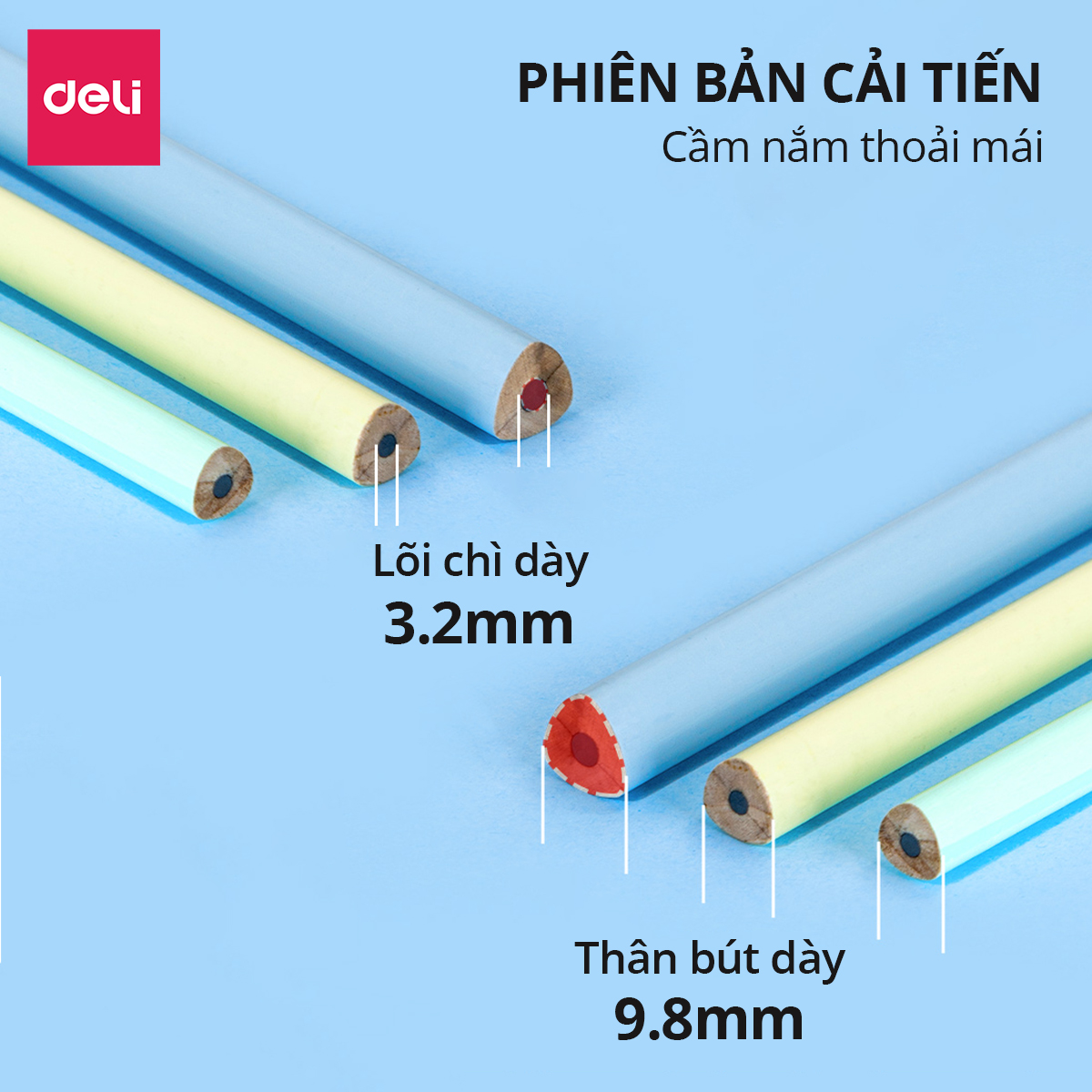 - Bút chì Deli - Viết chì là một vật dụng không thể thiếu đối với các bạn học sinh và giới văn phòng. - Chất liệu gỗ trầm mềm, giúp việc gọt bút trở