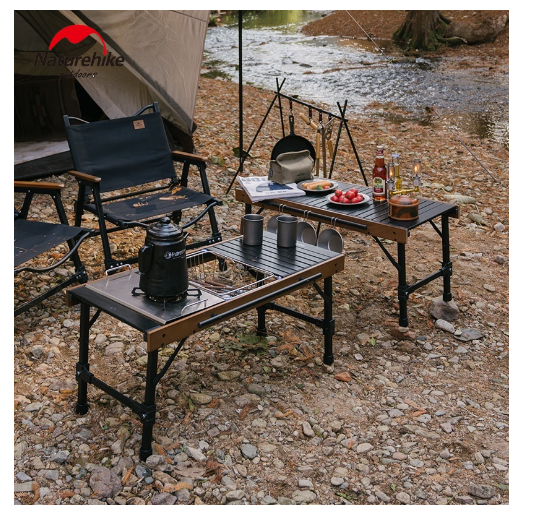 Bàn gỗ gấp gọn ray trượt NatureHike NH21JU001 phối màu giữa gỗ óc chó đen và gỗ sồi trắng Bắc Mỹ tạo nên vẻ đẹp sang trọng. Thiết kế có thể mở rộng bàn. Gấp gọn,