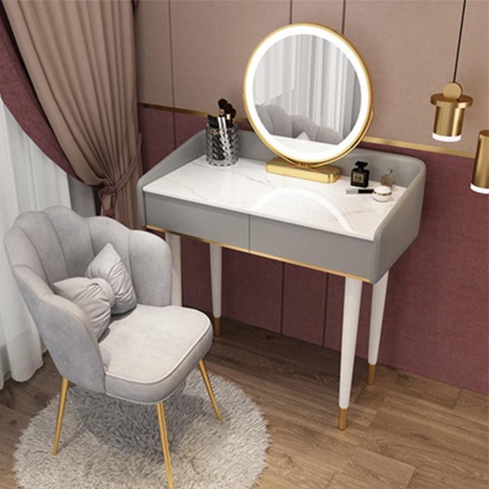 - Bàn phấn có kèm gương tròn gắn LED tiện lợi, phong cách độc đáo