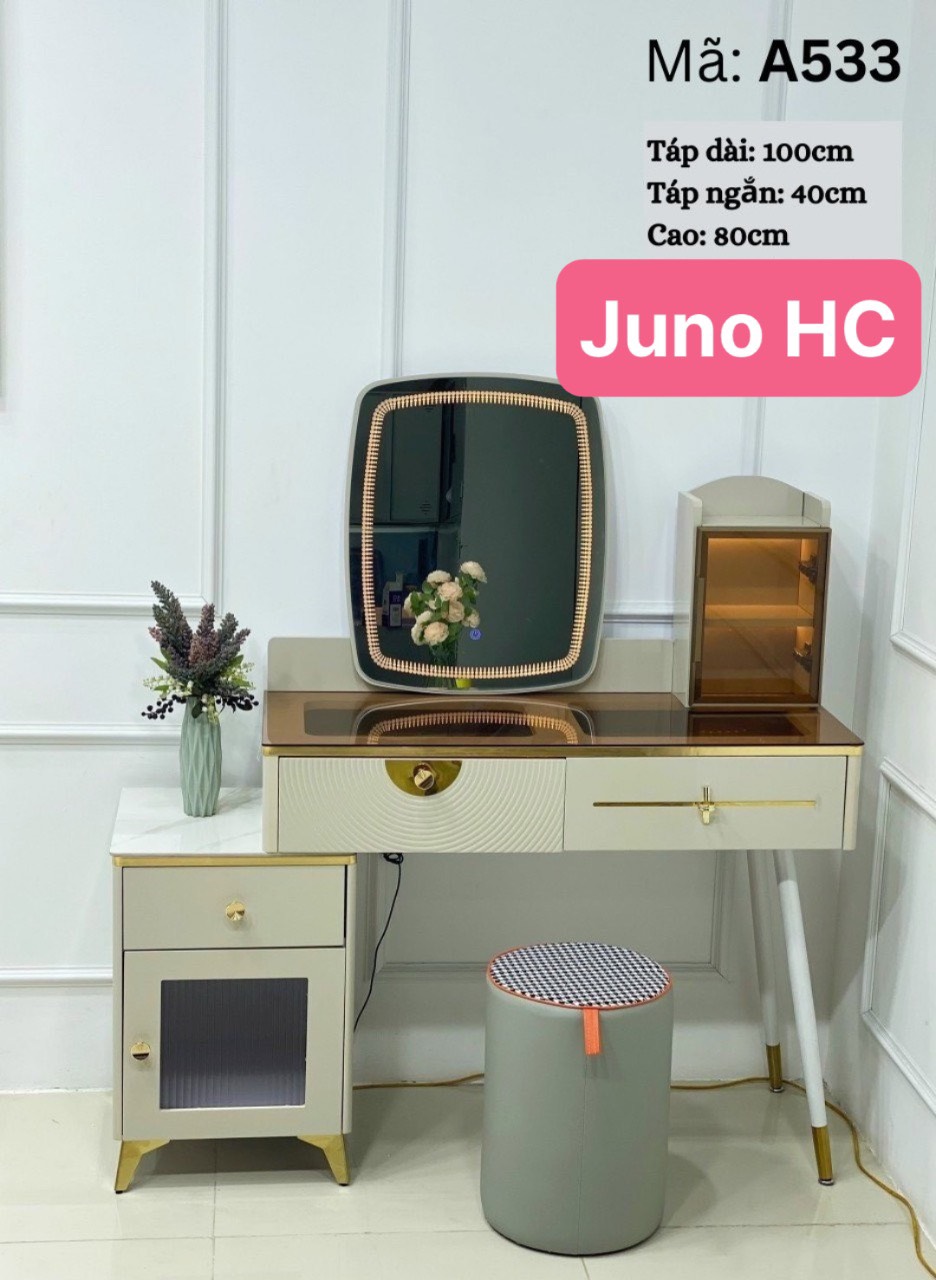 ✨Bàn trang điểm HC Juno Sofa bọc da mặt kính gương led cảm ứng