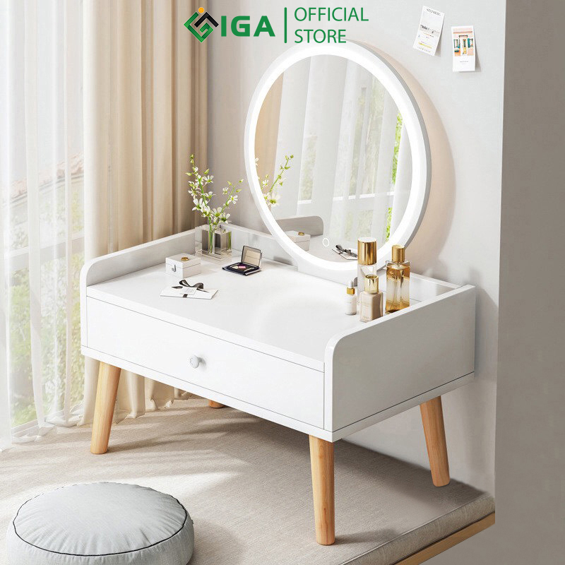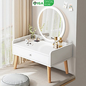 - Tên sản phẩm: Bàn trang điểm thông minh thương hiệu IGA (KHÔNG BAO GỒM GHẾ, GƯƠNG) - Kích thước: Chiều dài điều chỉnh từ 100-130cm, rộng 40cm, cao 74cm - Chất liệu: Gỗ MDF