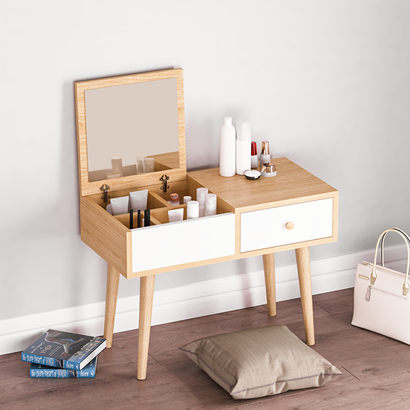* Bàn trang điểm nhỏ gọn, đa năng - Bàn phấn trang điểm nhỏ gọn, đa năng với thiết kế đơn giản, các chi tiết hạn chế tối đa sự cầu kỳ, phức tạp