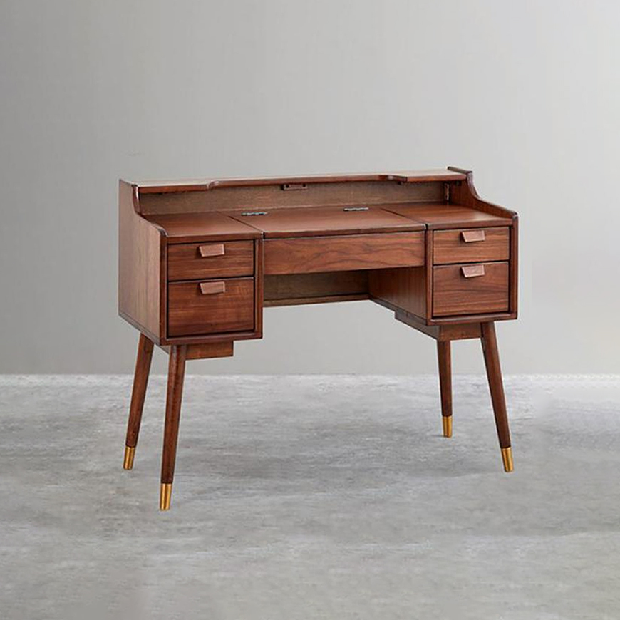 - Tính năng: Bàn trang điểm, bàn làm việc MÔ TẢ SẢN PHẨM Bàn trang điểm Value có thiết kế đơn giản, đường nét bo tròn mềm mại thể hiện phong cách tinh tế của gia chủ. Bàn trang điểm làm bằng gỗ cao su tự nhiên thân thiện với môi trường có độ dẻo dai và tuổi thọ sử dụng cao. Chân bàn được thiết kế trụ tròn cao tạo cảm giác tinh giản, thoáng đãng hơn cho không gian phòng. Đặc biệt điểm nhấn sơn vàng ở chân bàn làm tăng sự nổi bật cho sản phẩm. Mặt bàn được hoàn thiện bằng lớp veneer gỗ óc chó cao cấp giúp cảm nhận được vẻ đẹp của vân gỗ vốn có của gỗ thiên nhiên. Các chi tiết cấu tạo được lắp ráp hoàn hảo an toàn trong quá trình sử dụng. Bàn trang điểm có kèm gương, gập mở dễ dàng phù hợp với nhu cầu sử dụng hoặc yếu tố phong thủy trong phòng ngủ. Thiết kế nhiều ngăn chứa đồ tiện dụng giúp căn phòng gọn gàng hơn.