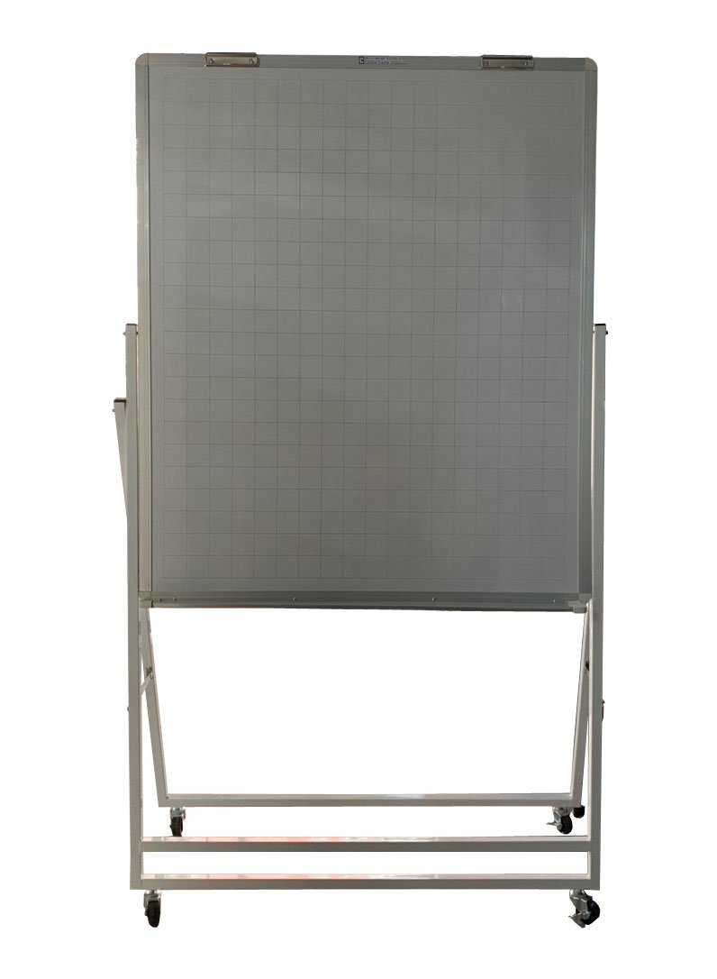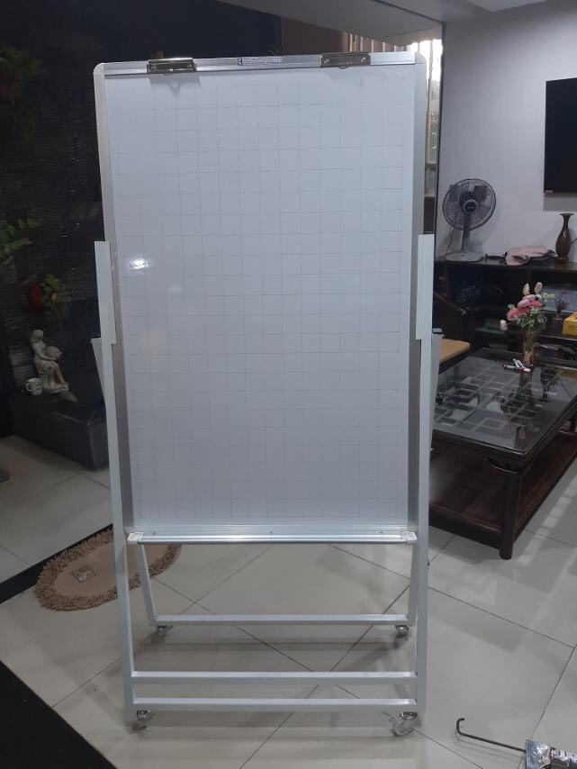 - Bảng có chống xếp để đứng trên bàn để viết hoặc xếp lại để nằm trên bàn để viết tùy ý. - Một mặt trắng Poly Taiwan có ô ly vuông, viết lau dễ