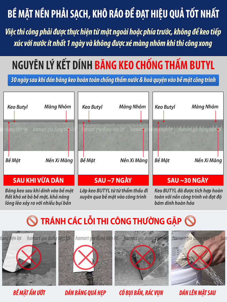 - Keo cao su butyl tự nhiên chất lượng cao, tăng độ dày 1mm, độ bền chắc vượt trội so với loại băng giá rẻ chỉ dày 0.5mm cao su tái chế