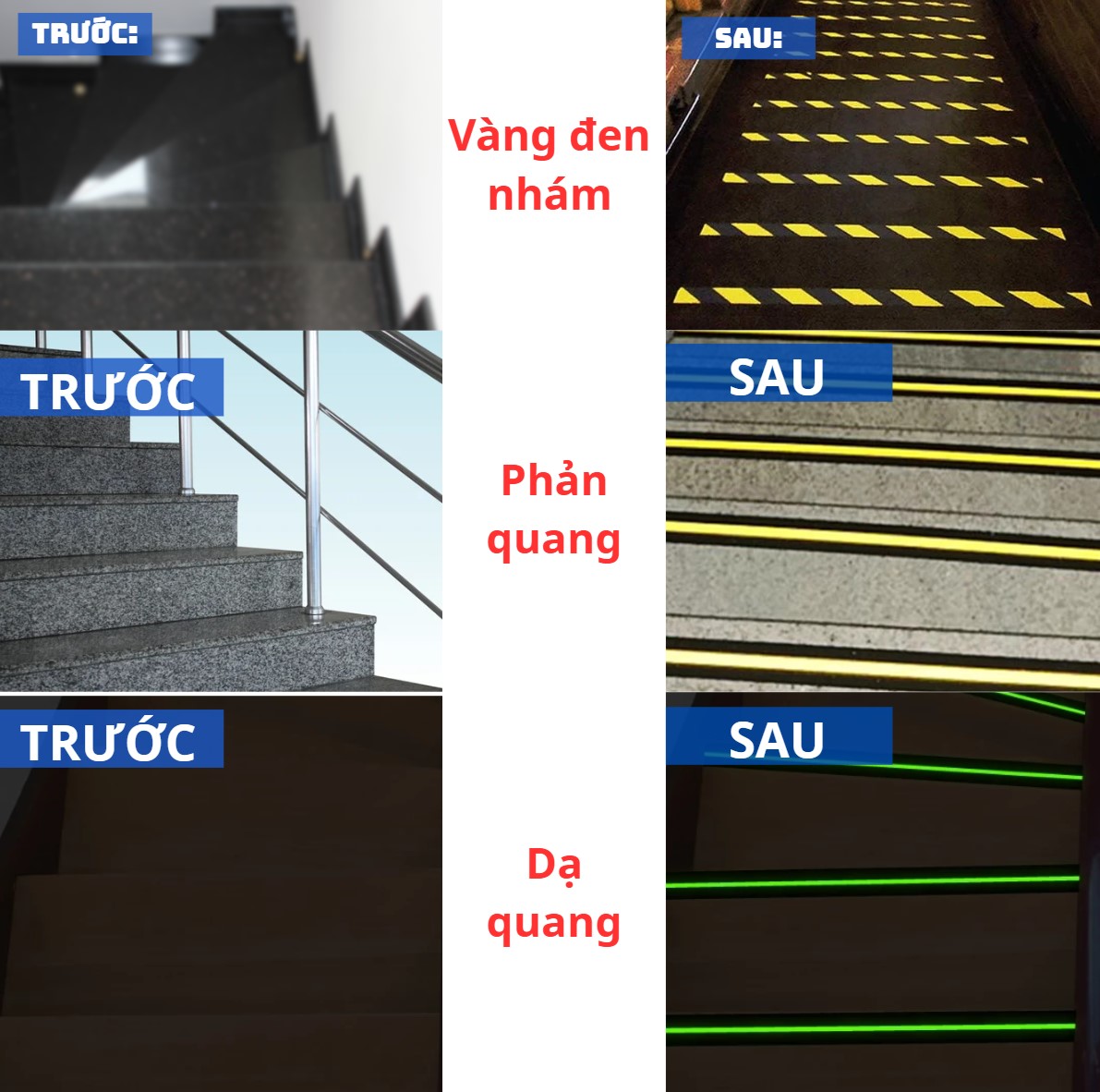 - Dán ở mép cầu thang để người lớn tuổi dễ nhìn hơn vào buổi tối