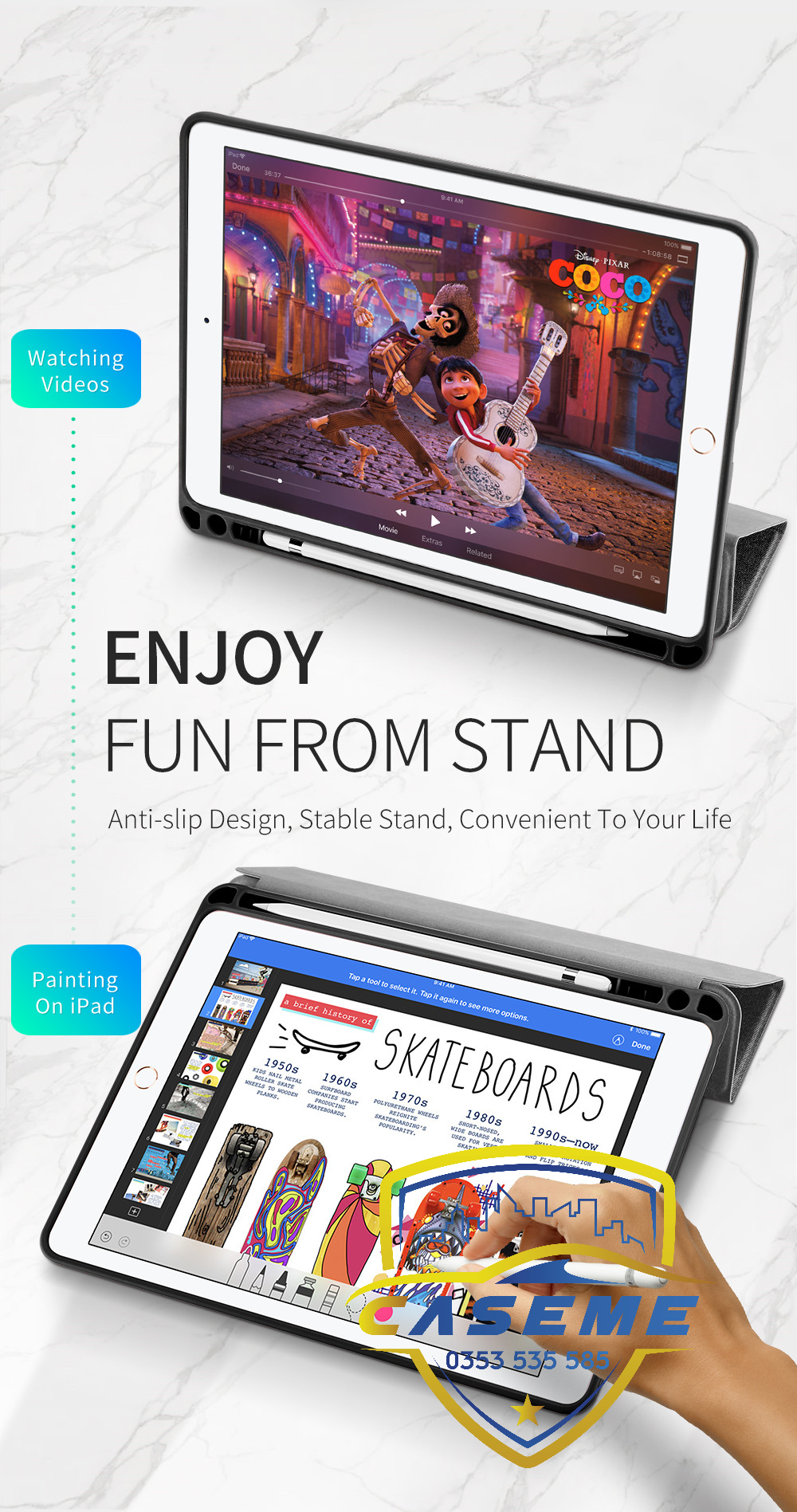 - Tương thích với tất cả các chức năng của Pencil 2 / USB C / Pencil Pro - Chân đế tích hợp để xem rảnh tay dễ dàng - Lớp hấp thụ sốc với
