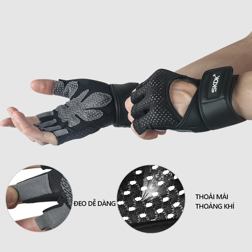 Găng tay tập gym kết hợp bảo vệ cổ tay chất liệu Silicon thời trang chính hãng SKDK siêu bền
