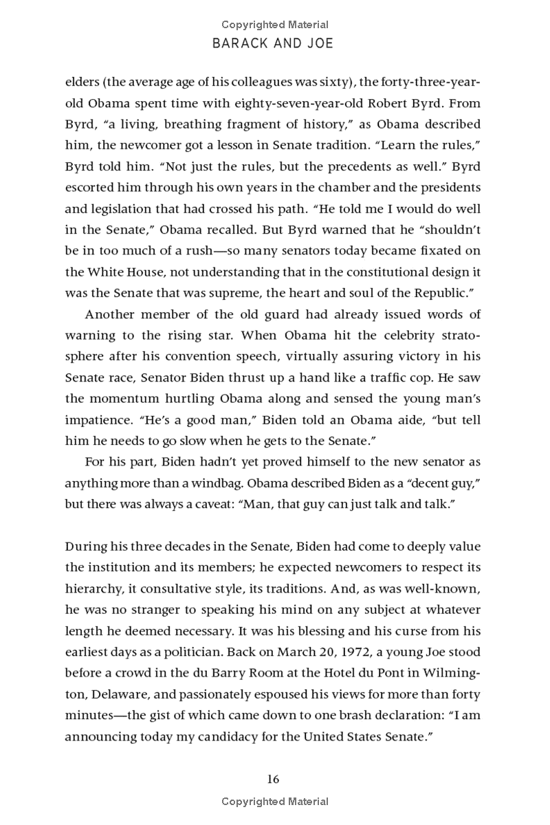 The extraordinary partnership of Barack Obama and Joe Biden is unique in American history. The two men, their characters and styles sharply contrasting, formed a dynamic working relationship that evolved into a profound friendship. Their affinity was not predestined. Obama and Biden began wary of each other: Obama an impatient freshman disdainful of the Senate's plodding ways; Biden a veteran of the chamber and proud of its traditions.Gradually they came to respect each other's values and strengths and rode into the White House together in 2008. Side-by-side through two tension-filled terms, they shared the day-to-day joys and struggles of leading the most powerful nation on earth. They accommodated each other's quirks: Biden's famous miscues kept coming, and Obama overlooked them knowing they were insignificant except as media fodder. With his expertise in foreign affairs and legislative matters, Biden took on an unprecedented role as chief adviser to Obama, reshaping the vice presidency. Together Obama and Biden guided Americans through a range of historic moments: a devastating economic crisis, racial confrontations, war in Afghanistan, and the dawn of same-sex marriage nationwide. They supported each other through highs and lows: Obama provided a welcome shoulder during the illness and death of Biden's son Beau.As many Americans turn a nostalgic eye toward the Obama presidency, Barack and Joe offers a new look at this administration, its absence of scandal, dedication to truth, and respect for the media. This is the first book to tell the full story of this historic relationship and its substantial impact on the Obama presidency and its legacy.