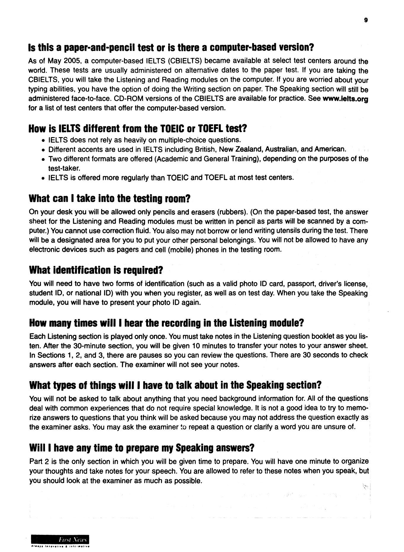 Cuốn sách giúp người học định hướng và làm quen với từng dạng bài của của từng kỹ năng trong một bài thi IELTS. Bên cạnh việc phân tích định dạng bài thi, cuốn