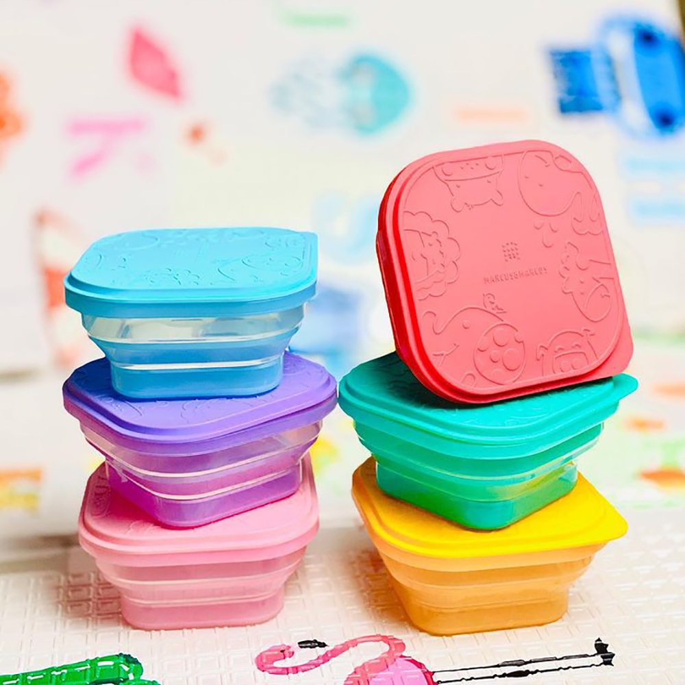 ✨Bát ăn dặm silicon vuông có thể xếp gọn cho bé Marcus & Marcus