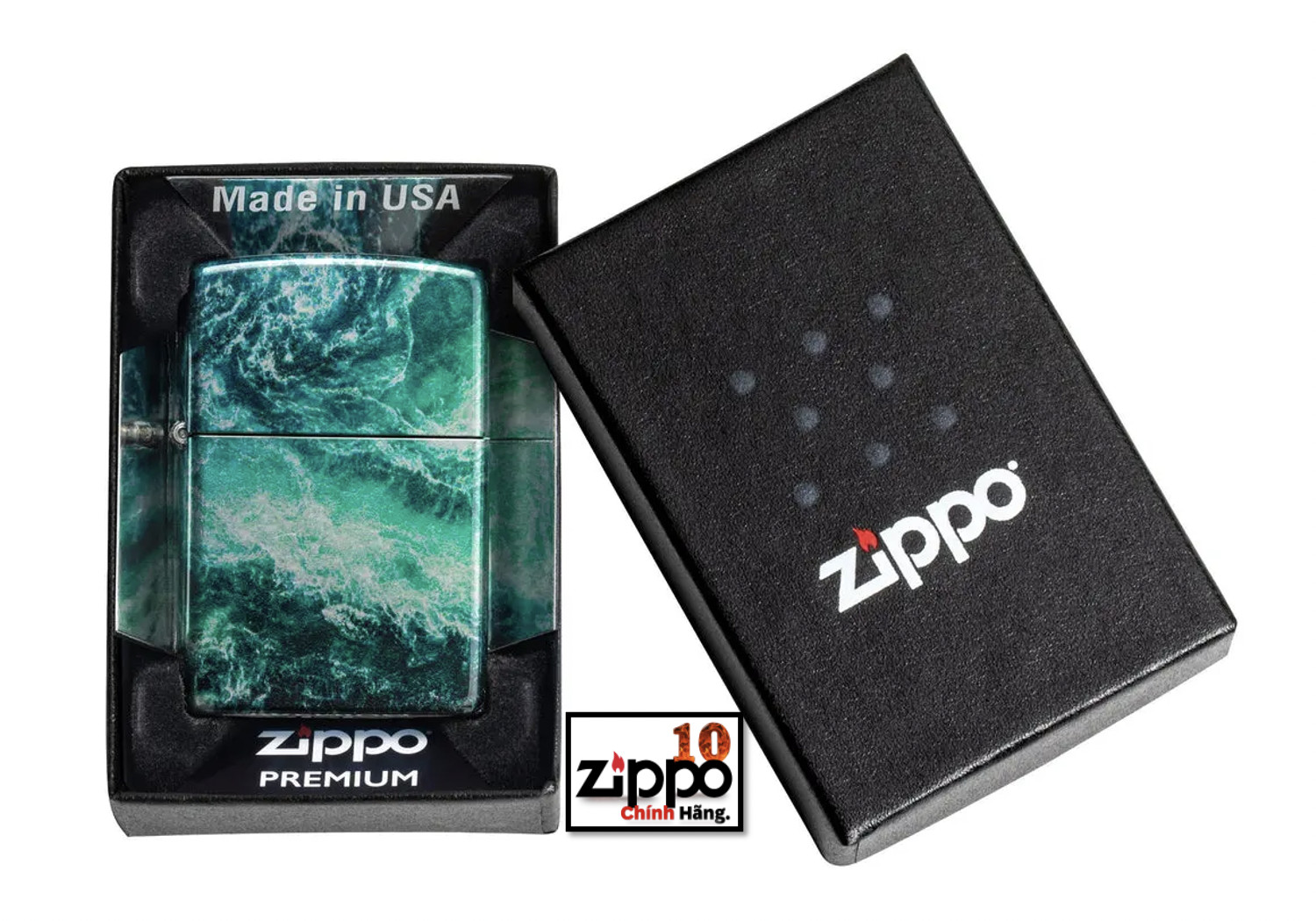 Bật lửa Zippo chính hãng Made in USA 100% Âm thanh mở nắp đặc trưng với tiếng "click" Chống gió tốt trong môi trường gió mạnh, ngay cả trước quạt máy Fullbox 100% trong hộp