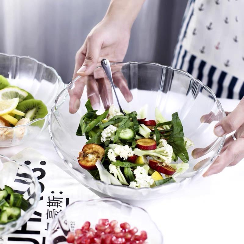 Thiết kế đẹp mắt hình eo. Có thể thả hoa, bày trái cây, bày món tráng miệng như chè, hoa quả thái miếng hoặc bày đồ ăn (salad, súp, hoặc nguyên cả con cá dài).