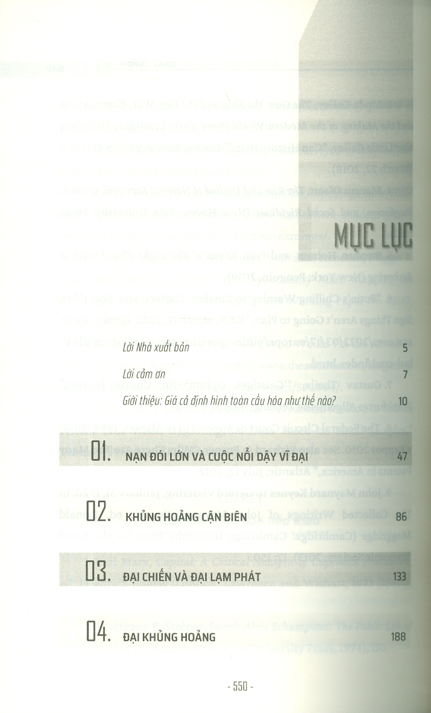 Trên cơ sở khung lý thuyết khái quát, Giáo sư nổi tiếng người Mỹ Harold James - chuyên gia hàng đầu trong nghiên cứu về Lịch sử kinh tế và quan hệ quốc tế đã phân tích một số cuộc khủng hoảng toàn cầu trong lịch sử cận hiện đại thông qua cuốn sách Bảy cuộc khủng hoảng định hình toàn cầu hóa của ông. Được bố cục thành 7 chương, nội dung sách xem xét một số cuộc khủng hoảng lớn trên thế giới từ thế kỷ XIX đến nay, trong đó có “BẢY CUỘC KHỦNG HOẢNG ĐỊNH HÌNH TOÀN CẦU HÓA’’ Harold James khủng hoảng cuối thập niên 1840, các cú sốc cung - cầu đồng thời trên thị trường chứng khoán năm 1873, thời kỳ Đại suy thoái 1929-1933, cuộc khủng hoảng tài chính toàn cầu 2007-2008 và gần đây nhất là cuộc khủng hoảng Covid-19.