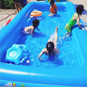 Hồ bơi thiết kế lớn có thể cho 3 bé cùng bơi Chất liệu pvc an toàn Đáy hồ bơm hơi ngồi êm ái Hồ cao 3 tầng
