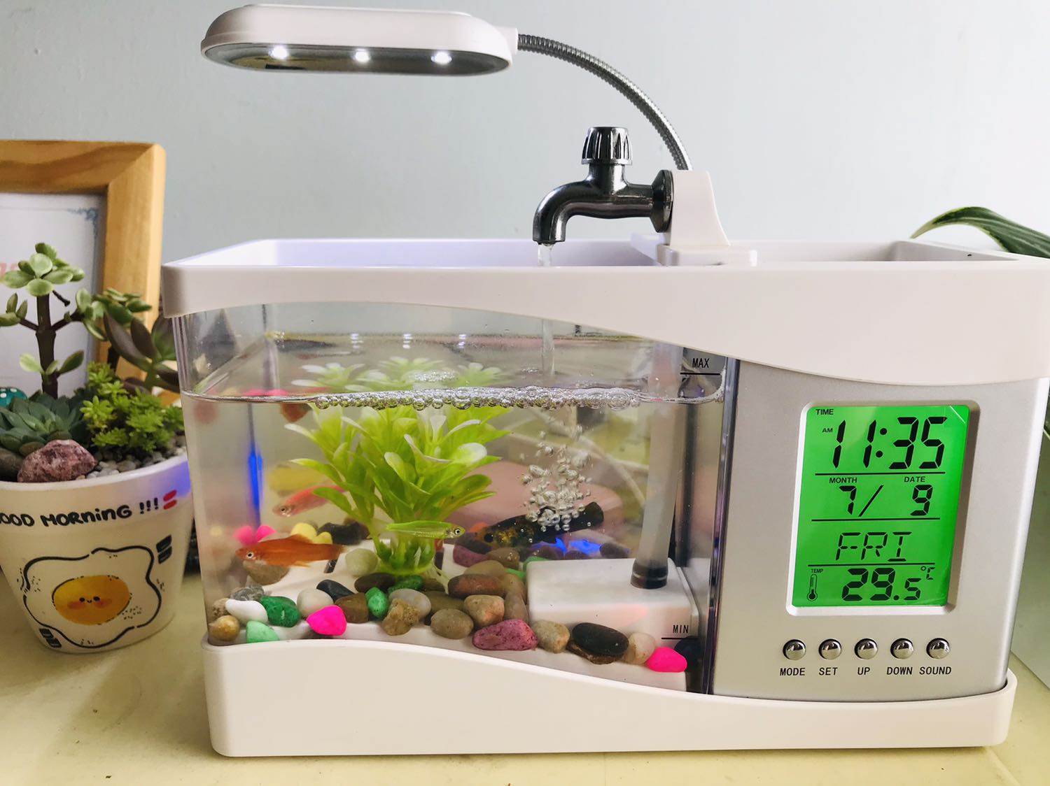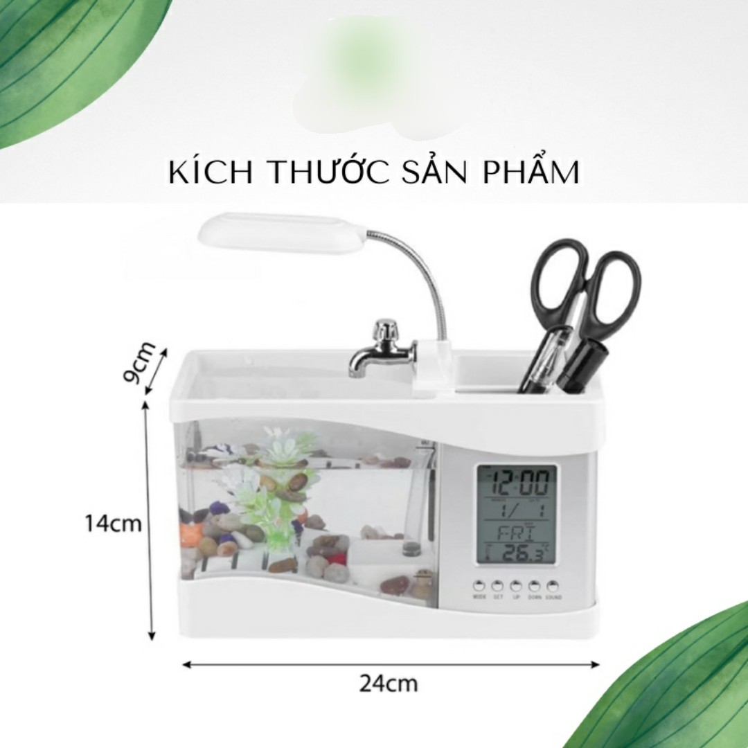 Bể Cá Mini Để Bàn Làm Việc 3 in 1 Kiêm Đồng Hồ Siêu Dễ Thương Hàng Loại 1 - Chính Hãng MINIIN + Tặng sỏi trang trí bể cá,sỏi biển đủ kích thước - Màu Ngẫu Nhiên