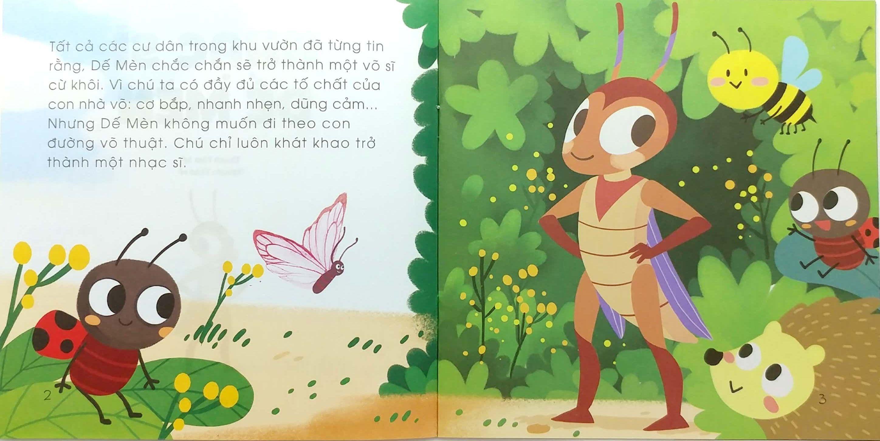 Ai cũng có điểm mạnh riêng. Dế Mèn yêu thích âm nhạc, chú thích thả hồn vào những giai điệu du dương. Dẫu bạn bè xung quanh chê bai rằng Dế Mèn sinh ra không phải dành cho âm nhạc, nhưng Dế Mèn không nản lòng thoái chí, chú vẫn kiên trì tập luyện, tập luyệ Cuối cùng, âm nhạc của Dế Mèn cũng được mọi người công nhận và tán thưởng