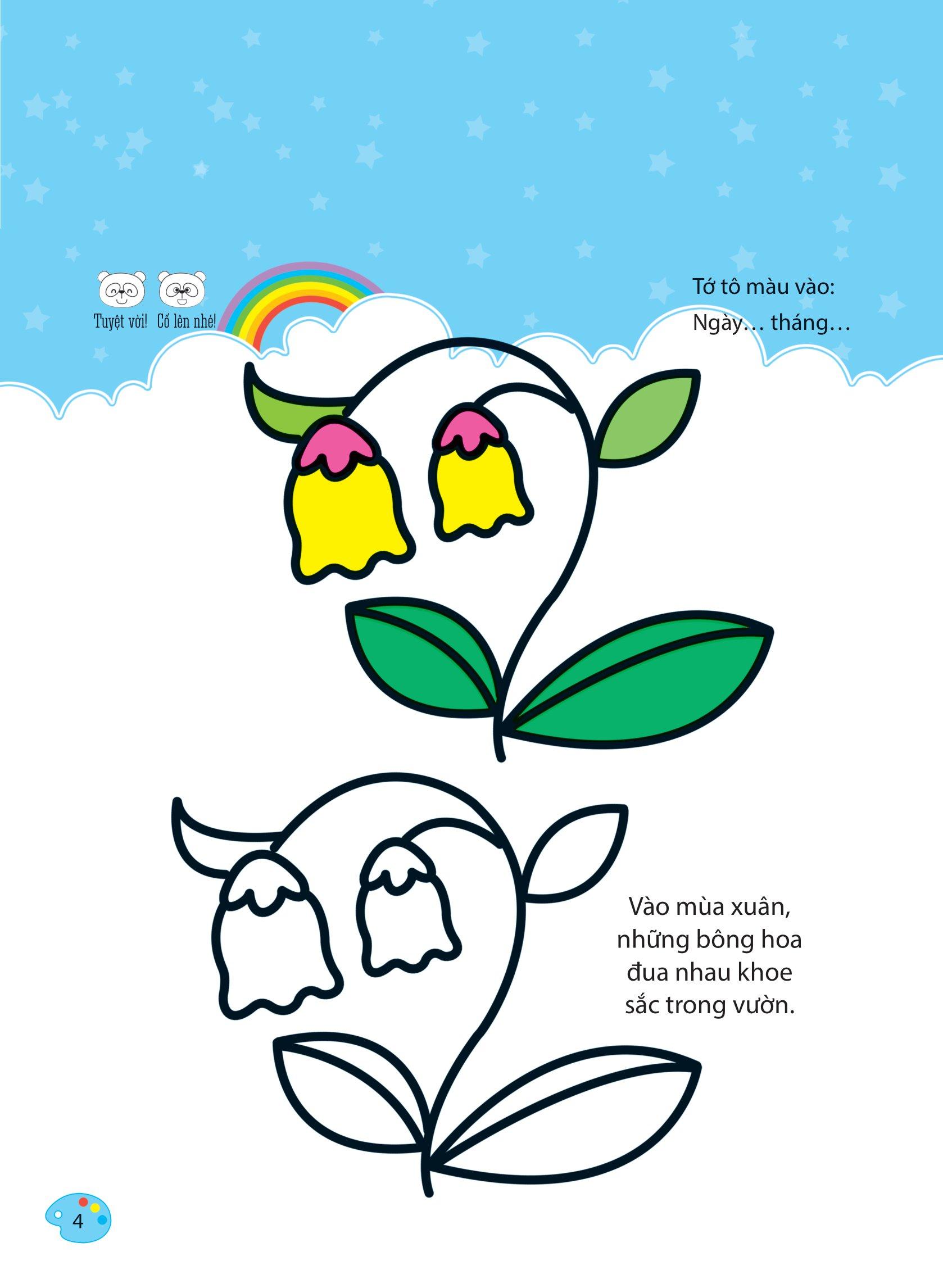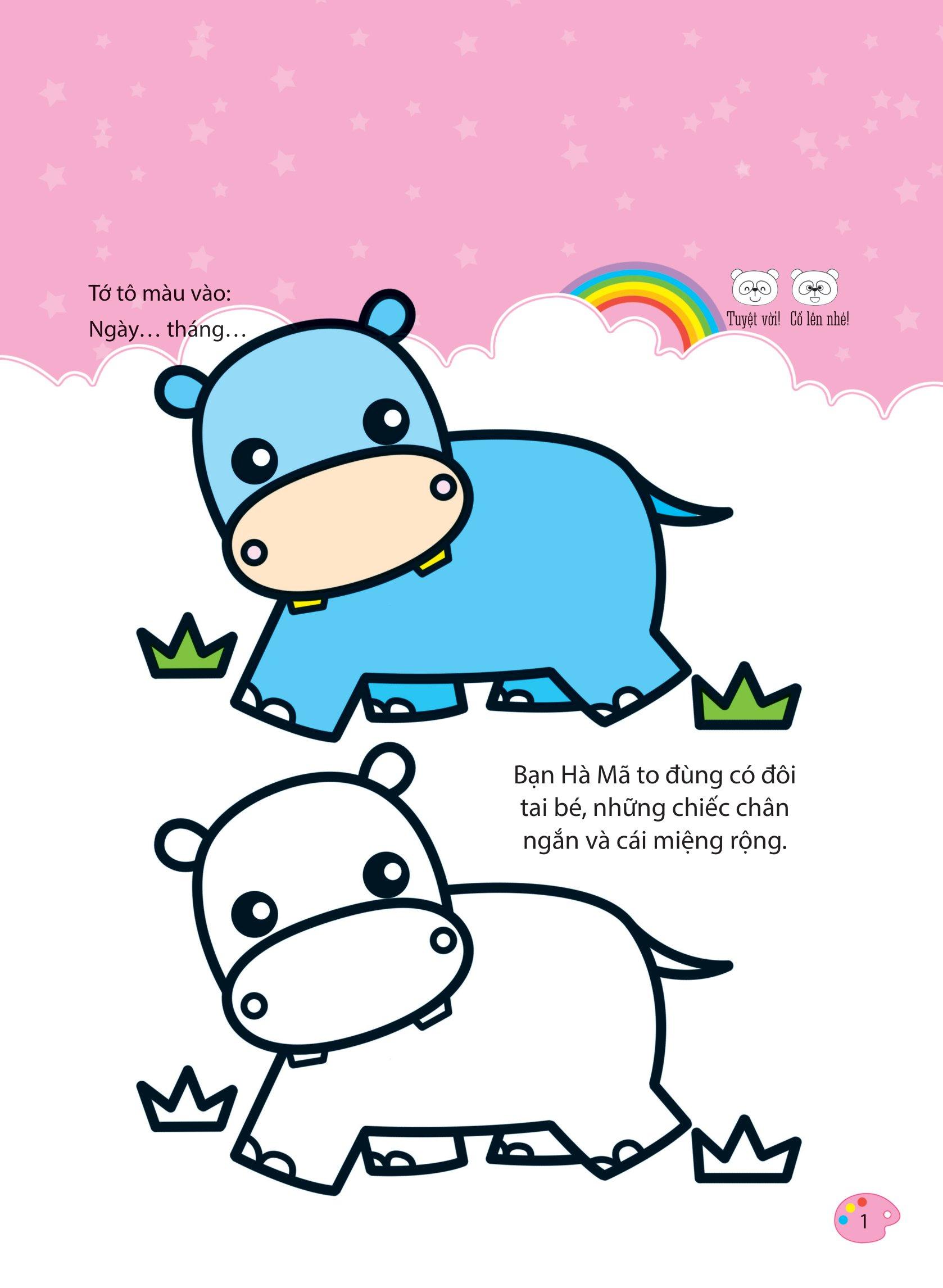 Ngoài việc tô màu theo sự sáng tạo riêng của mỗi bé, sách có gợi ý màu sắc, hình tô mẫu để các bé có thể dễ tưởng tượng và ghi nhớ được hình dạng và màu sắc.