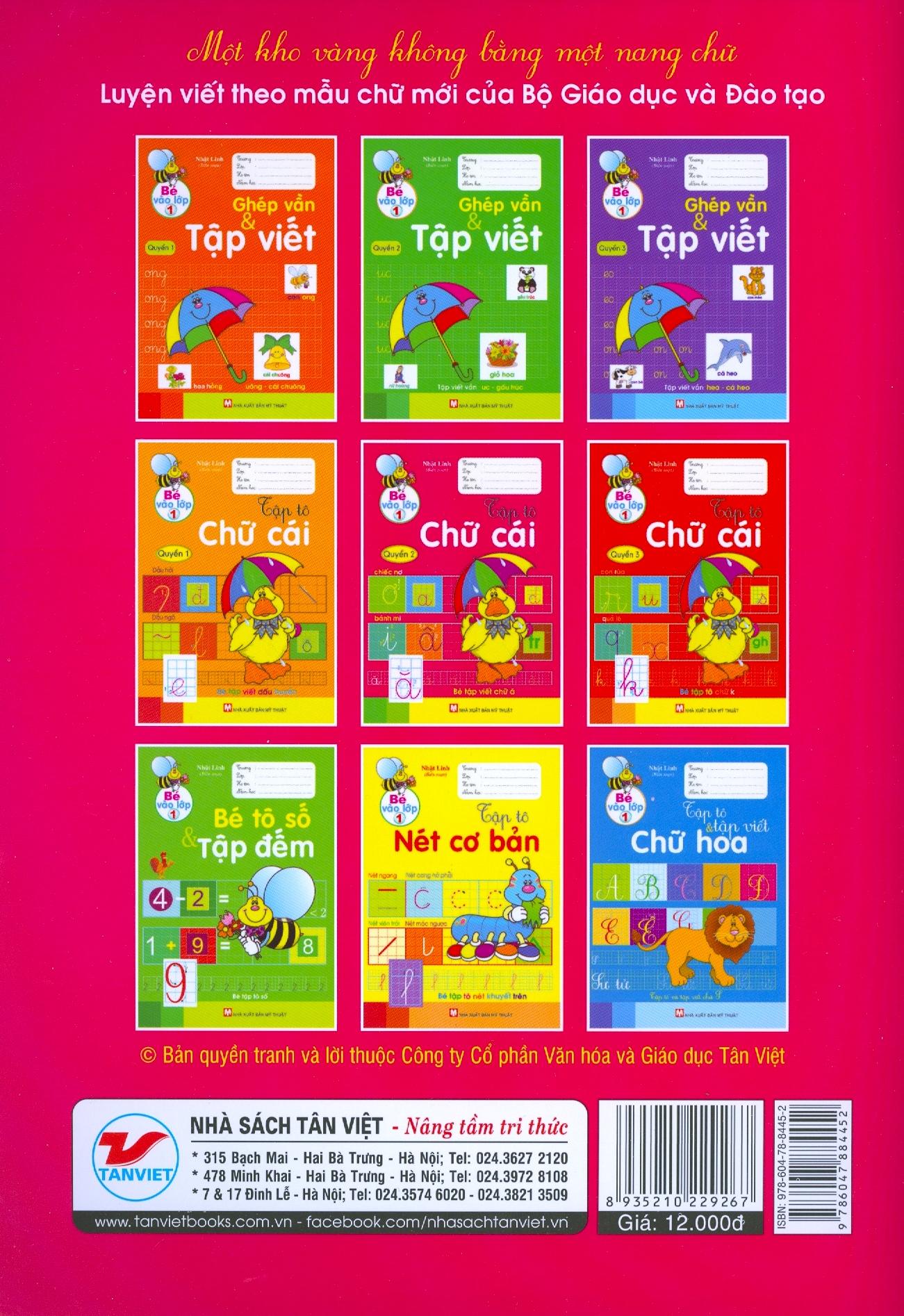 Tô màu - phương pháp giúp trẻ làm quen với tri thức một cách tự nhiên và vô cùng hiệu quả. Đây là phương pháp kết hợp giữa học và chơi, bé vừa thỏa sức sáng tạo với thế giới màu sắc. Đồng thời, có thể làm quen với các con số và chữ cái nhanh chóng. Ra đời với mục đích ấy, bộ sách "Bé vào lớp 1: Tập đếm, tô chữ cái, chữ hoa" chính là bộ sách Vàng nên có mặt tại tủ sách dạy con của mọi gia đình có trẻ trong giai đoạn bước vào lớp 1.