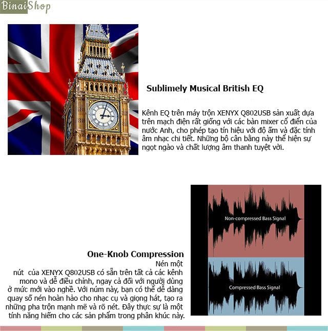 • Các EQ 3-band giống với các bàn mixer cổ điển nước Anh cho âm thanh ấm áp.