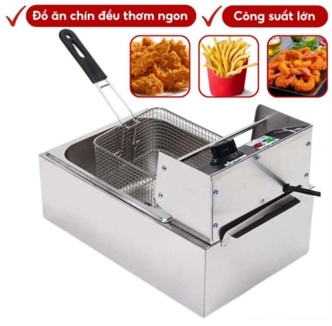 – Bếp chiên điện 1 thùng 1 giỏ là dòng bếp đơn có một thùng chứa dầu và 1 giỏ đựng thực phẩm khi chiên, rán.