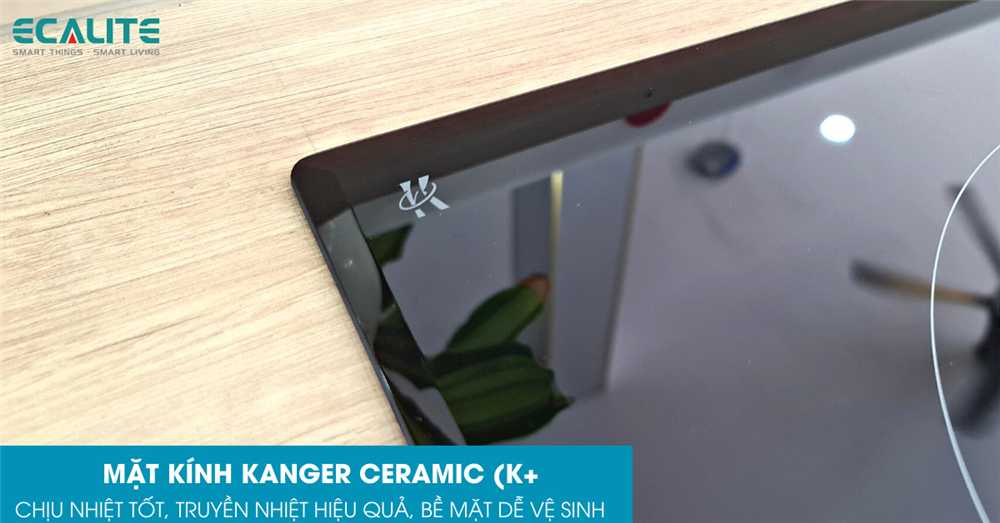 Kanger Ceramic là loại mặt kính được trang bị khá phổ biến trên các loại bếp hồng ngoại hiện nay. Ưu điểm của loại kính này là có khả năng chịu được nhiệt độ cao và chịu lực tốt, do đó bạn có thể đặt các loại nồi lớn để nấu với nhiệt độ cao rất tiện lợi. Bên cạnh đó, kính Kanger Ceramic còn mang lại quá trình truyền nhiệt tốt cho đáy nồi, bề mặt đồng nhất giúp dễ dàng vệ sinh sau mỗi lần sử dụng.