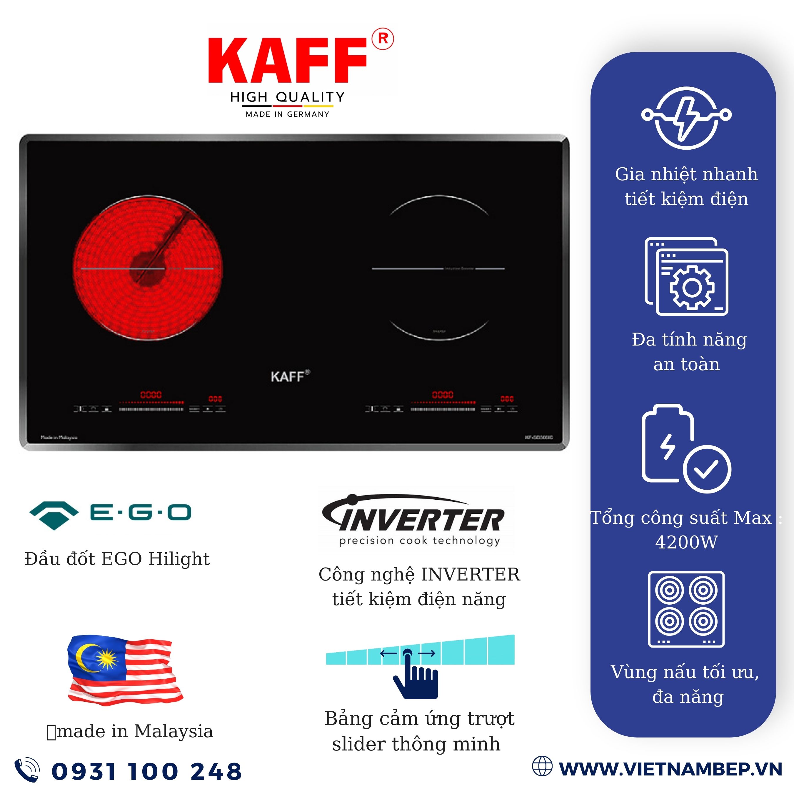Bếp điện từ đôi KAFF KF FL 7008IH Nhập khẩu từ Malaysia