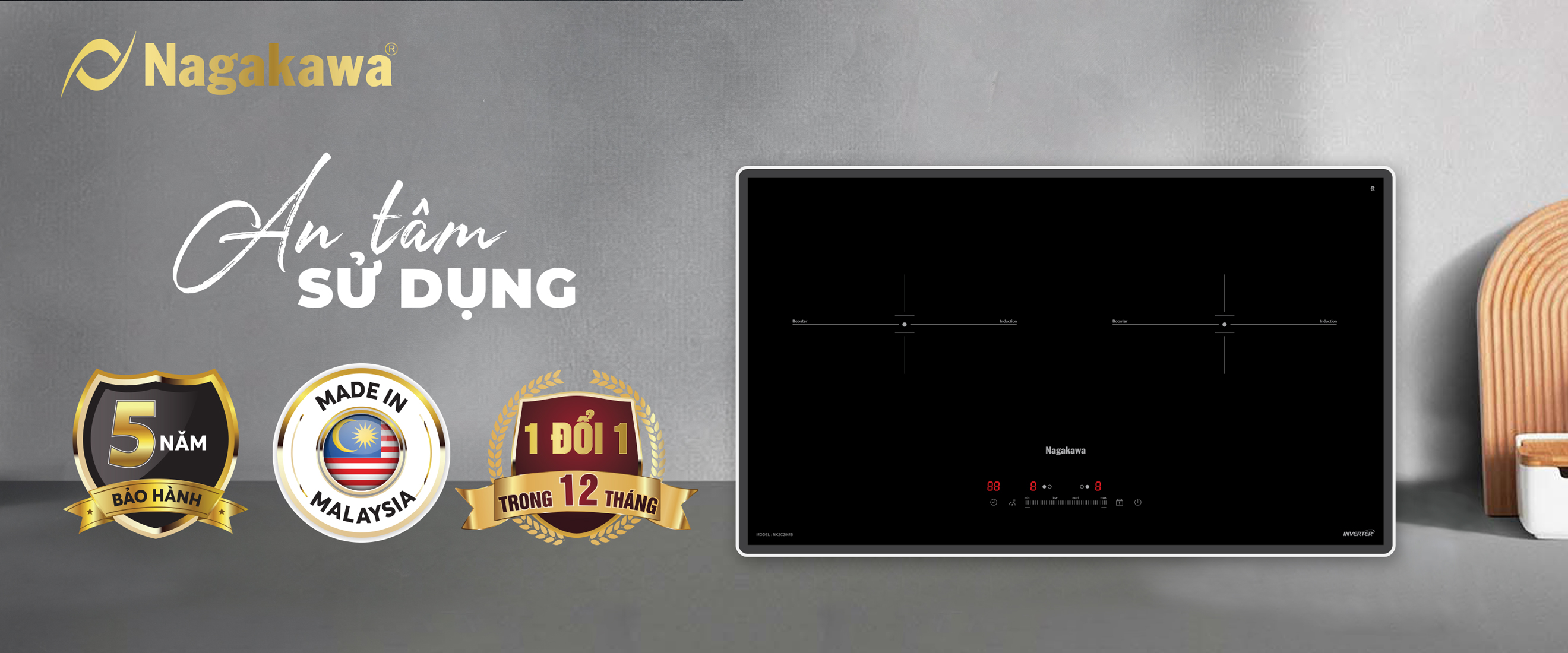 TÍCH HỢP TÍNH NĂNG AN TOÀN VÀ BẢO VỆ THIẾT BỊ VƯỢT TRỘI Bếp đôi điện từ Nagakawa UltraSlim NK2C29MB được trang bị các tính năng thông minh tiện lợi cho người sử dụng, đồng thời giúp nâng cao độ bền của bếp như: Công nghệ chống nhiệt lan tỏa, cảm ứng quá nhiệt, tự động ngắt bếp khi không có nồi đun nấu, dừng hoạt động khi thức ăn tràn xuống bếp, Ngoài ra, bếp còn được trang bị chức năng khóa an toàn, hạn chế sự cố ngoài ý muốn xảy ra nếu như trẻ em vô tình bấm hay nghịch bếp.
