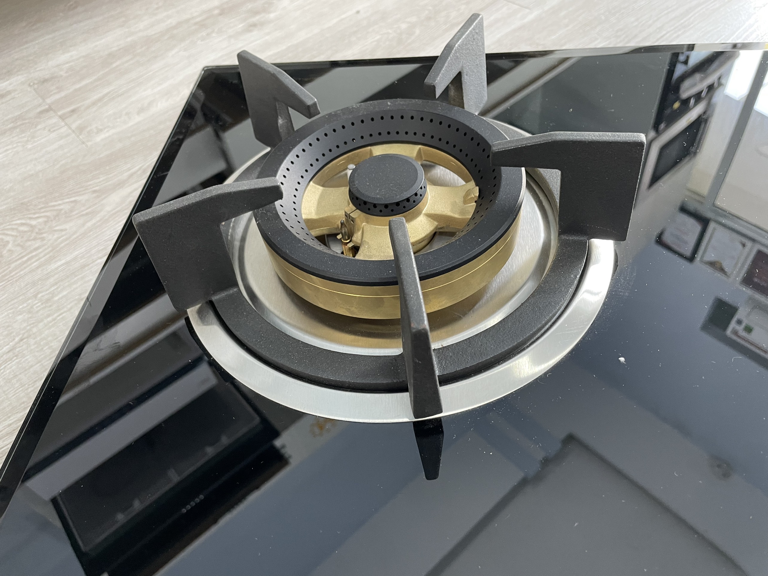 Bếp gas âm kính dày 8mm 2 lò Hệ thống mâm chia lửa sabaf Khay chống tràn inox 304 Kiềng gang siêu bền Đánh lửa bằng Pin IC 1.5V Nút bấm hợp kim siêu bền,