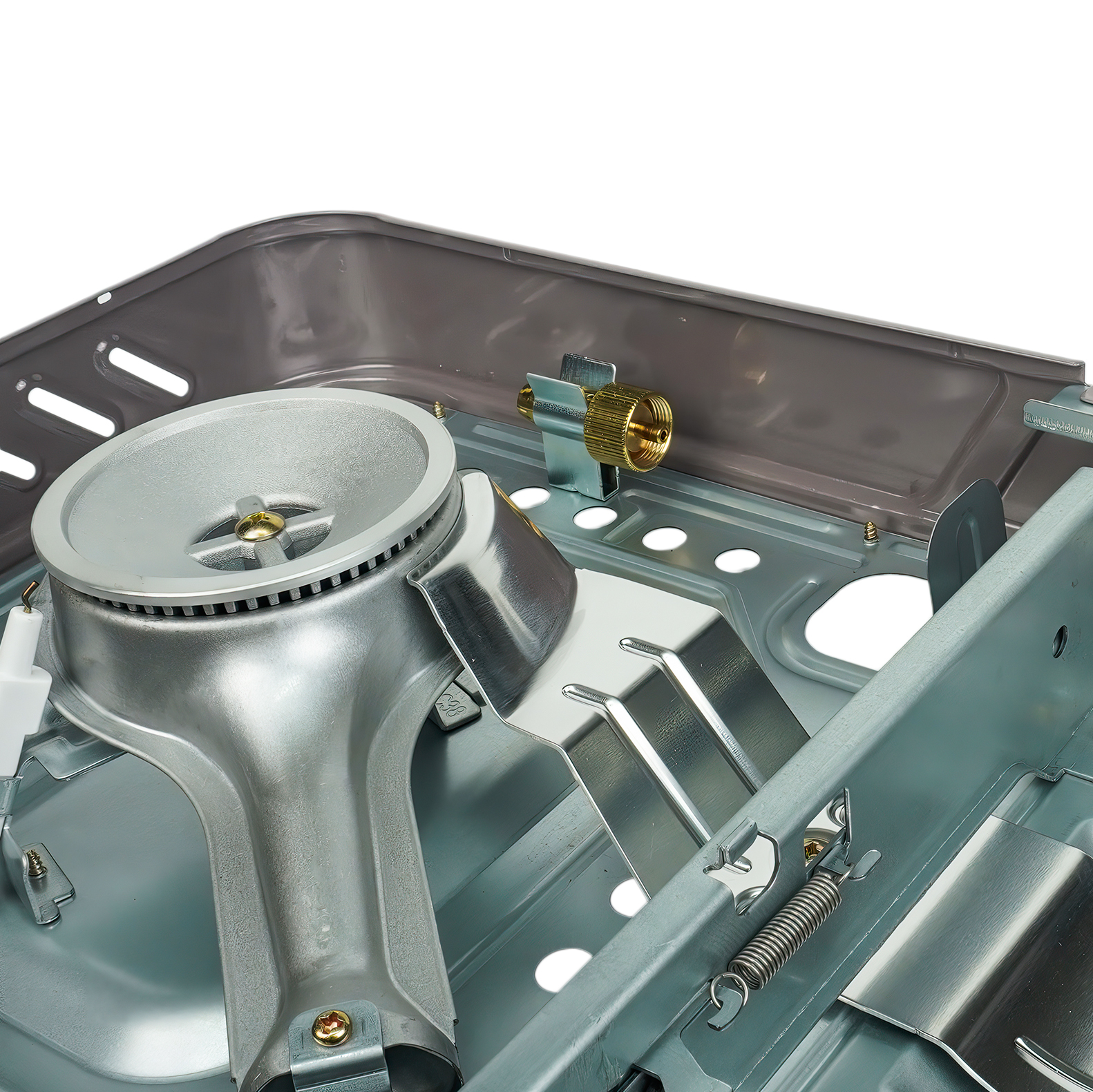 Bếp du lịch sử dụng van ngắt gas an toàn tự động Inline Cut. Bếp sử dụng hệ thống đầu đốt theo tiêu chuẩn JIA (Nhật Bản), kết hợp vòng chắn gió, giúp ngọn lửa