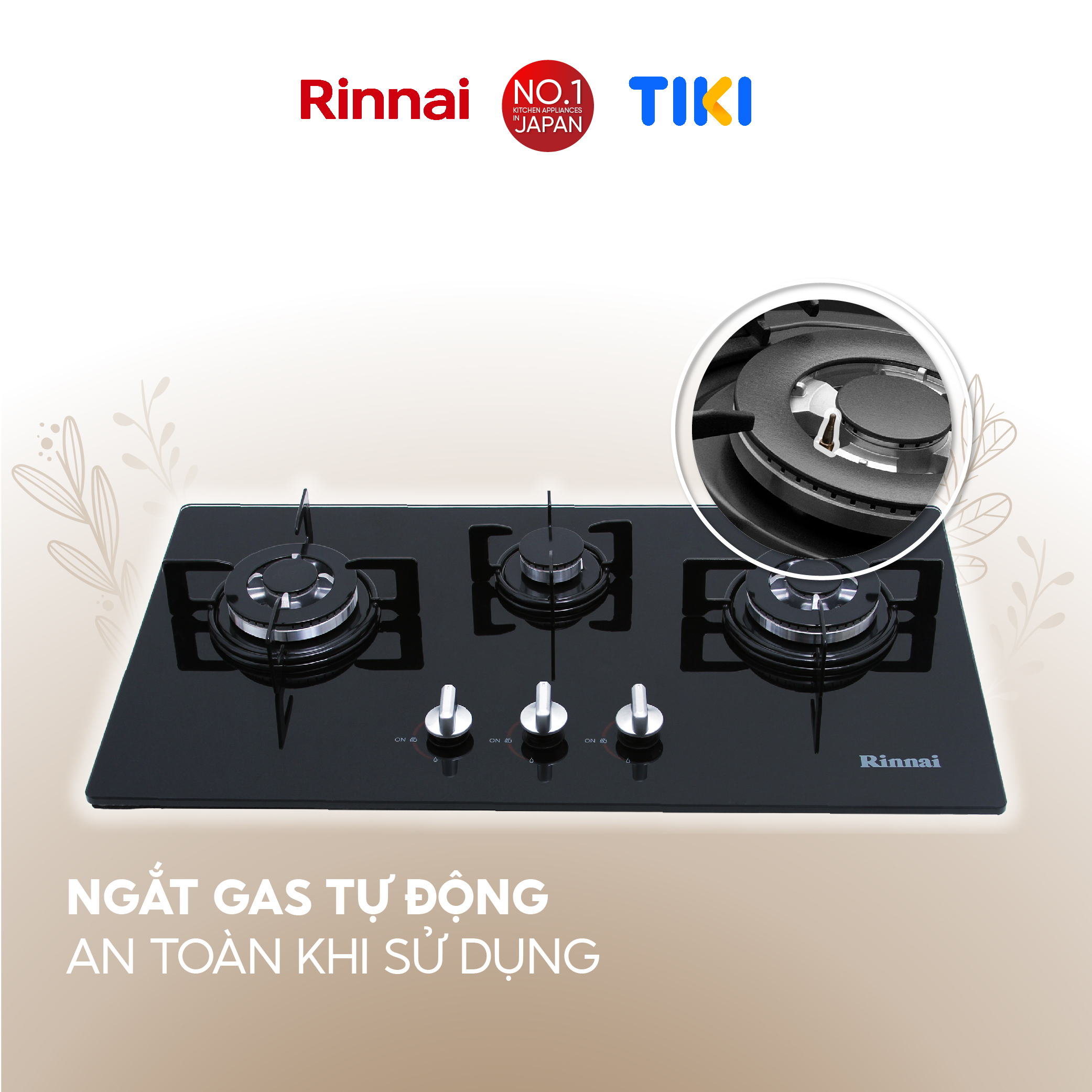 RINNAI chân thành cảm ơn bạn đã quan tâm đến sản phẩm: Bếp gas âm Rinnai RVB-312BG mặt bếp kính và kiềng bếp men - Hàng chính hãng.
