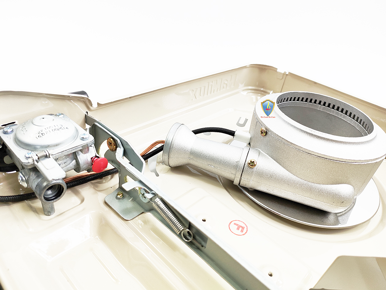 Bếp du lịch sử dụng van ngắt gas an toàn tự động Inline Cut. Bếp sử dụng hệ thống đầu đốt theo tiêu chuẩn JIA (Nhật Bản), kết hợp vòng chắn gió, giúp ngọn lửa