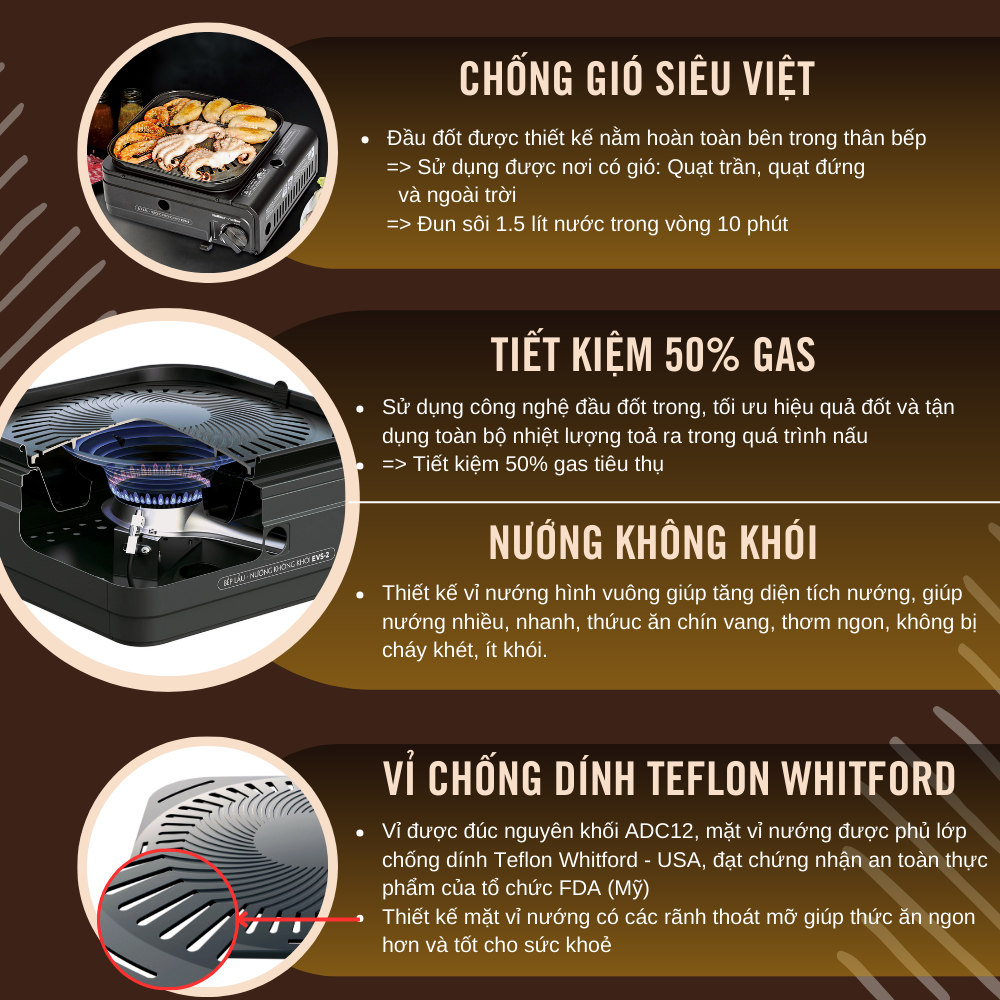 ✨Bếp Lẩu - Nướng Không Khói EVS2│Chống Gió Siêu Việt│Vỉ Chống Dính Teflon Whitford│Hàng Chính Hãng