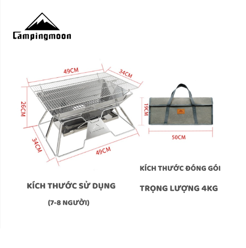 MÔ TẢ SẢN PHẨM BẾP NƯỚNG THAN HOA GẤP GỌN CHO 5-8 NGƯỜI CAMPINGMOON MT-3 * THÔNG TIN SẢN PHẨM: - Thương hiệu: Campingmoon - Mã sản phẩm: MT-3 - Chất liệu: stainless steel, iron