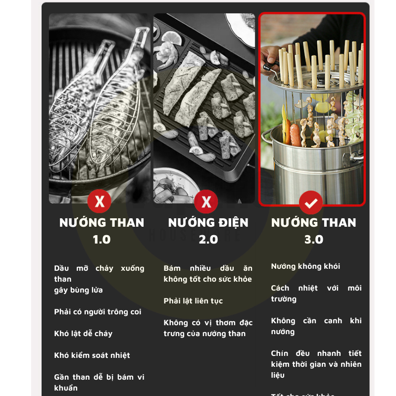 1. THÔNG TIN SẢN PHẨM - Kích thước sử dụng: 30x30x36cm - Số xiên thịt nướng cùng lúc: 20 - Chất liệu: Thép không gỉ 2. ƯU ĐIỂM: - Hạn chế
