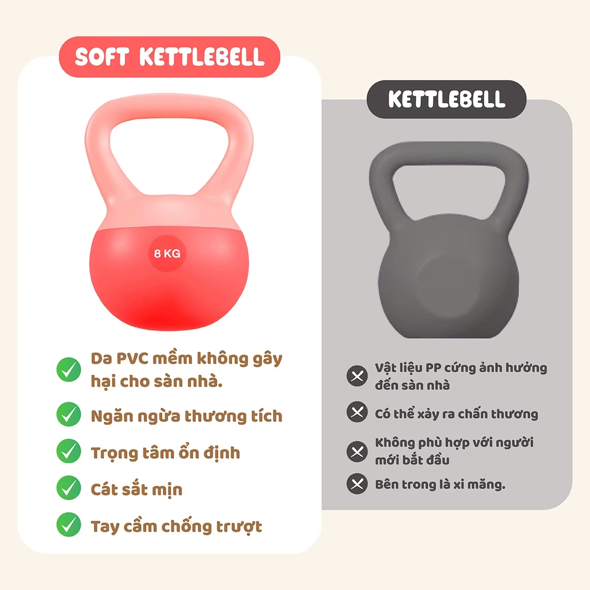 - Chuông ấm được đúc nguyên khối, chắc chắn và bền bỉ. Nó được làm bằng nhựa PVC và vật liệu sắt, chống ăn mòn, không độc hại, không mùi. Thích hợp cho các bài tập tại nhà, văn phòng và phòng tập thể dục. − Lợi ích