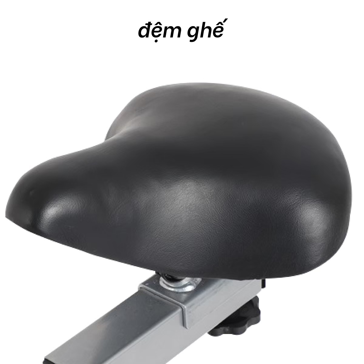 Yên xe bằng chất liệu cao su dày, bền bỉ, tạo cảm giác êm dễ chịu khi ngồi không bị ê mỏi. Đồng thời yên ngồi có thể điều chỉnh độ cao thấp sao cho phù hợp với chiều cao người và tư thế người tập nhờ chốt điều chỉnh ở dưới yên.