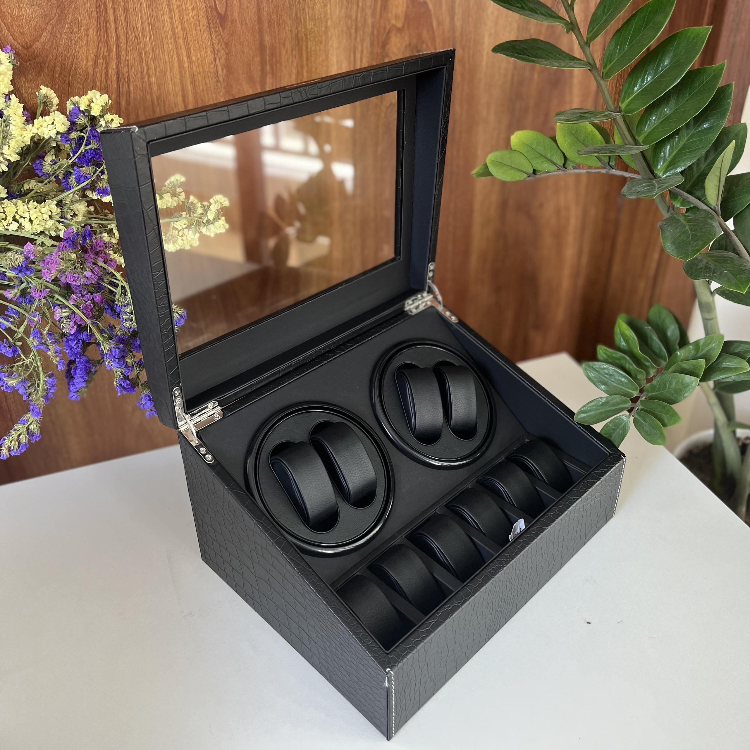 ✨[BH 2 Năm Động Cơ] Hộp Đựng Đồng Hồ Cơ 4 Xoay Và 6 Trưng Bày Da