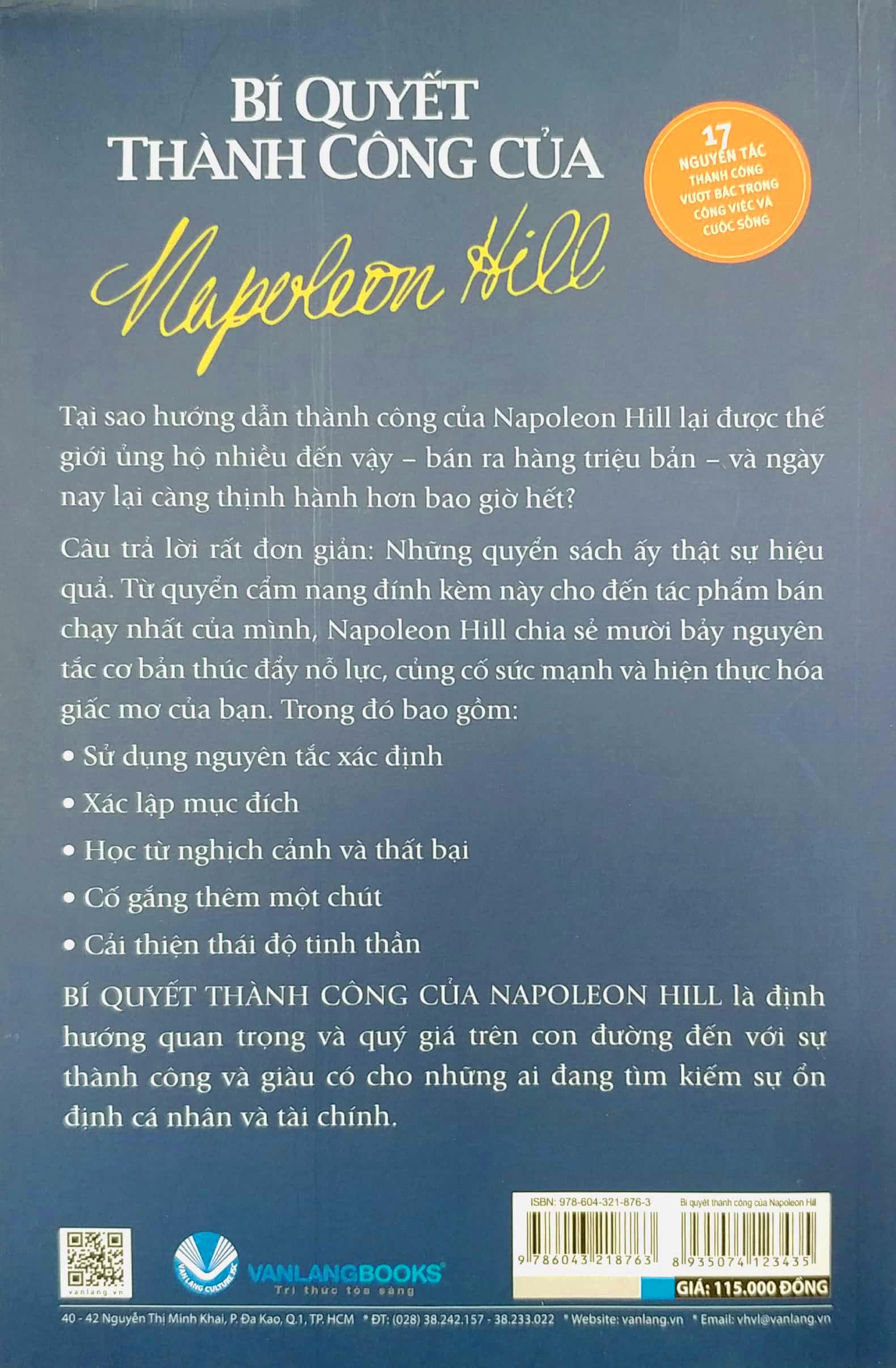 Tại sao hướng dẫn thành công của Napoleon Hill lại được thế giới ủng hộ nhiều đến vậy – bán ra hàng triệu bản – và ngày nay lại càng thịnh hành hơn bao giờ hết? Câu trả lời rất đơn giản: Những quyển sách ấy thật sự hiệu quả. Từ quyển cẩm nang đính kèm này cho đến tác phẩm bán chạy nhất của m.ình, Napoleon Hill chia sẻ mười bảy nguyên tắc cơ bản thúc đẩy nỗ lực, củng cố sức mạnh và hiện thực hóa giấc mơ của bạn. Trong đó bao gồm: Sử dụng nguyên tắc xác định Xác lập mục đích Học từ nghịch cảnh và thất bại Cố gắng thêm một chút Cải thiện thái độ tinh thần Bí quyết thành công của Napoleon Hill là định hướng quan trọng và quý giá trên con đường đến với sự thành công và giàu có cho những ai đang tìm kiếm sự ổn định cá nhân và tài chính.
