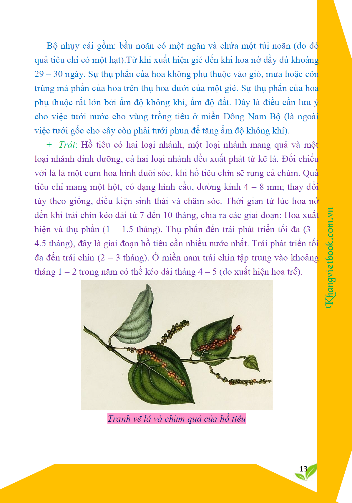 Bí Quyết Thành Công Kĩ Thuật Trồng Tiêu Hiệu Quả Từ nhiều năm nay, giới kinh doanh nông sản và gia vị khắp thế giới biết đến Việt Nam với tư cách của một nhà xuất khẩu hồ tiêu số 1 thế giới. Năm 2014, ngành hồ tiêu Việt Nam vượt ngưỡng xuất khẩu đạt kim ngạch trên 1 tỷ USD, sản lượng chiếm trên 41% tổng sản lượng các nước trồng tiêu toàn thế giới và lượng xuất khẩu đạt 58% thị phần hồ tiêu toàn cầu. Cây hồ tiêu có tên khoa học là Piper Nigrum, thuộc họ Piperaceae, có nguồn gốc từ Ấn Độ, được người Pháp trồng ở Việt Nam từ thế kỷ XVII. Môi trường sinh trưởng tự nhiên là rừng xích đạo, nóng ẩm quanh năm, cây ưa lặng gió, che bóng, thích hợp với đất pha cát, tơi xốp, sâu, dốc thoải nhiều màu, thoát nước nhanh, lượng mưa thích hợp là 2500 – 3000 mm/năm. Hồ tiêu được trồng ở nước ta từ lâu, chủ yếu ở các tỉnh miền Nam, nhiều nhất là ở Phú Quốc, Kiên Giang, Bà Rịa – Vũng Tàu, Quảng Trị và còn được trồng ra tới Nghệ An, Hà Tĩnh nhưng diện tích ít hơn. Trong những năm qua, nghề trồng hồ tiêu đã có những bước nhảy vọt, lượng tiêu sản xuất và xuất khẩu mỗi năm tăng 20 – 30%. Năm 2001 Việt Nam xuất khẩu được 55.000 tấn Tiêu, năm 2002 đạt gần 70.000 tấn, đưa Việt Nam trở thành nước đứng thứ 2 về diện tích trồng (sau Ấn Độ) và là nước đứng đầu thế giới về sản xuất và xuất khẩu tiêu đen với các chủng loại nổi tiếng trong và ngoài nước như: Tiêu Phú Quốc, Tiêu Cù và Tiêu Hồ Xá (Quảng Trị), Tiêu Tiên Sơn (Gia Lai), Tiêu Đất Đỏ (Bà Rịa), Tiêu Di Linh (Lâm Đồng)… Các loại tiêu này được xuất khẩu sang nhiều nước và được đánh giá cao vì có độ thơm và vị cay nồng đặc trưng. Hiện nay, Việt Nam có 6 tỉnh trọng điểm sản xuất hồ tiêu gồm Bình Phước 12.148 ha, Đắk Nông 11.154 ha, Đắk Lắk 12.082 ha, Bà Rịa – Vũng Tàu 9.074, Đồng Nai 9.010 ha, Gia Lai 11.245 ha. Trong đó, khu vực Tây Nguyên và miền Đông Nam Bộ đứng đầu về diện tích, năng suất và sản lượng hồ tiêu. Ngoài ra, nước ta còn có các vùng trồng tiêu khác như Phú Quốc (Kiên Giang) đã có thương hiệu lâu nay và vùng trồng hồ tiêu ở Quảng Trị… Việt Nam có tốc độ xuất khẩu hồ tiêu tăng nhanh, đạt tốc độ tăng 15– 20% bình quân mỗi năm. Năm 2001, lần đầu tiên Việt Nam trở thành nước xuất khẩu hồ tiêu lớn nhất thế giới với tổng lượng xuất khẩu 50.506 tấn, đạt kim ngạch xuất khẩu khoảng 90 triệu USD. Sáu năm liên tiếp hạt tiêu của Việt Nam giữ vững vị trí số 1 về sản lượng và số lượng xuất khẩu trên thế giới. Năm 2014, ngành sản xuất hồ tiêu thế giới giảm sút do một số nước bị mất mùa đẩy giá tiêu lên cao, riêng Việt Nam vẫn ổn định, đạt diện tích hơn 73.500 ha, sản lượng gần 140.000 tấn, xuất khẩu 156.396 tấn (gồm cả lượng nhập về để tái xuất) và lần đầu tiên kim ngạch xuất khẩu đạt 1.2 tỷ USD. Hiện nay, hồ tiêu Việt Nam được xuất khẩu đến 97 quốc gia và vùng lãnh thổ thuộc châu Á, châu Âu, châu Mỹ, châu Phi. Đặc biệt, sản phẩm hồ tiêu chất lượng cao của Việt Nam xuất khẩu vào Mỹ và các nước EU ngày càng tăng. Các nước châu Âu chiếm thị phần 40%, đã chấp nhận công nghệ sản xuất hồ tiêu Việt Nam và các mặt hàng gia vị chế biến từ hồ tiêu của nước ta. Cây hồ tiêu hiện đang là cây trồng mang lại hiệu quả kinh tế cao, giúp cải tạo và nâng cao đời sống cho người nông dân trong nước chính vì vậy mà diện tích canh tác loại cây này cũng không ngừng tăng nhanh. Từ nhu cầu, lợi ích, hiệu quả và những tính năng kinh tế vượt trội do cây hồ tiêu mang lại, công ty sách Khang Việt xin trân trọng giới thiệu đến bạn đọc cuốn sách “Kỹ Thuật Trồng Tiêu Hiệu Quả”, hy vọng cuốn sách sẽ đem đến cho bạn đọc những thông tin bổ ích, hữu dụng và cần thiết trong cuộc sống và công việc kinh doanh của bạn.