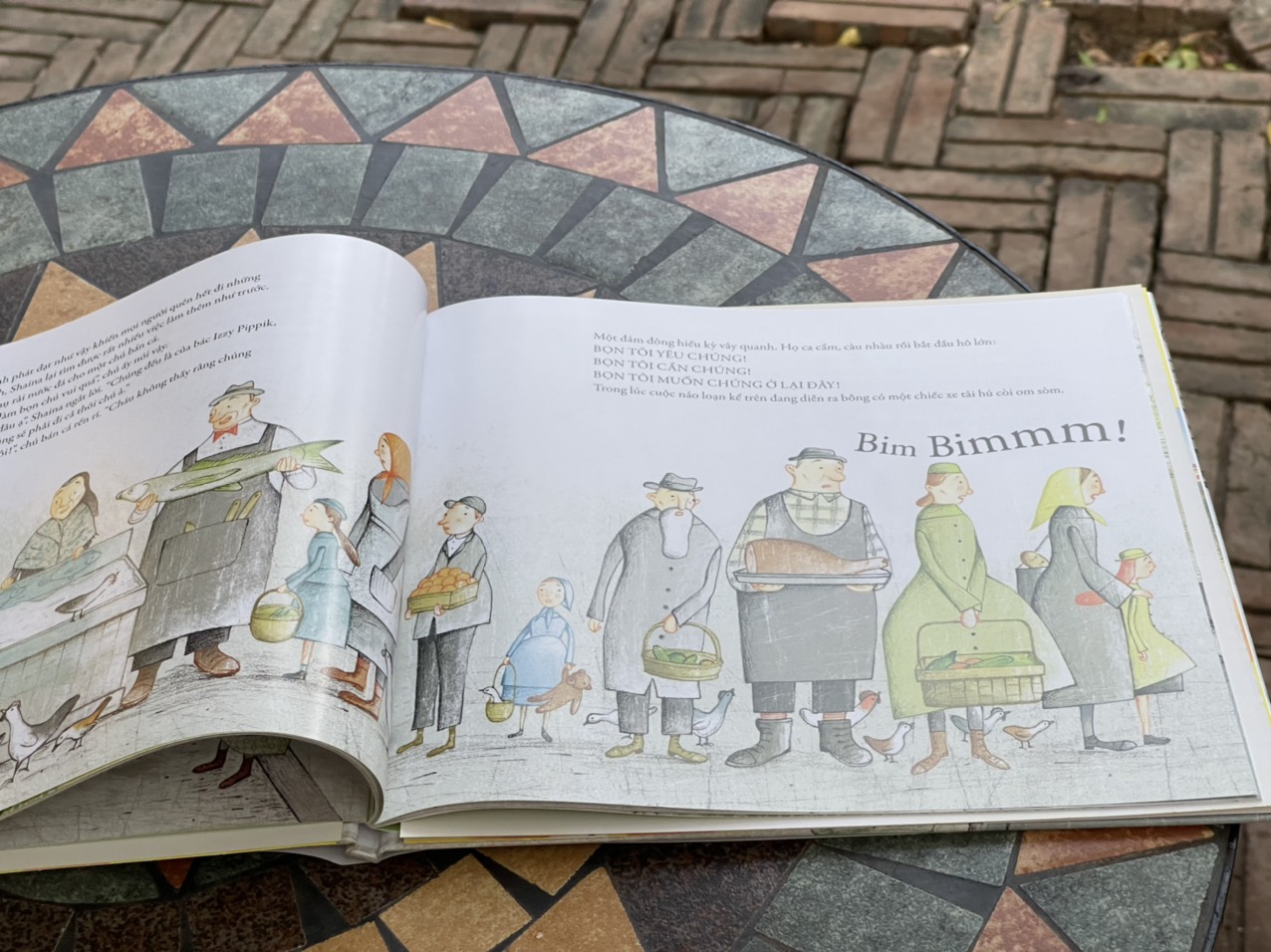 Bản dịch của Ngọc Hòa có nhiều từ tượng thanh và tượng hình, tuy không mới nhưng được vận dụng một cách thuần thục, khiến lời văn trở nên sống động hơn rất nhiều, nhất là những đoạn mô tả sự hỗn loạn do bầy gà gây ra: “Vậy là chẳng bao lâu sau, lũ gà trống gáy inh ỏi trên mái nhà, đàn gà mái làm tổ ở mọi ngóc ngách và hàng trăm con gà vỗ cánh phành phạch khắp nơi trong thị trấn.” Cuốn sách có nhiều tình tiết lặp lại - chẳng hạn như đoạn hội thoại đòi làm thịt cô gà, nếu dịch không khéo, sẽ rất nhàm chán. Nhưng Ngọc Hòa đã khéo léo biến tấu để mỗi tình tiết tuy giống nhau nhưng được kể một cách mới mẻ và thú vị.