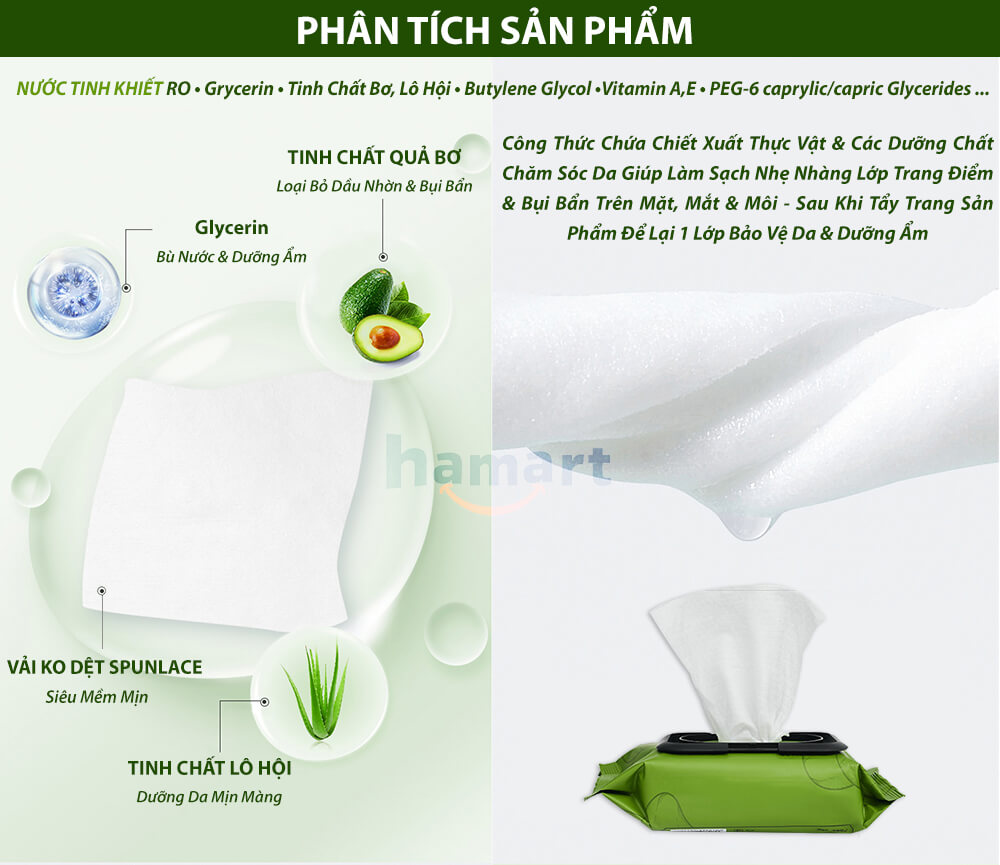 ✨Bịch 80 Khăn Giấy Ướt Tẩy Trang Tinh Dầu Bơ Hamart Sạch Sâu Dưỡng Ẩm Da Mặt Hiệu Quả Tiện Lợi