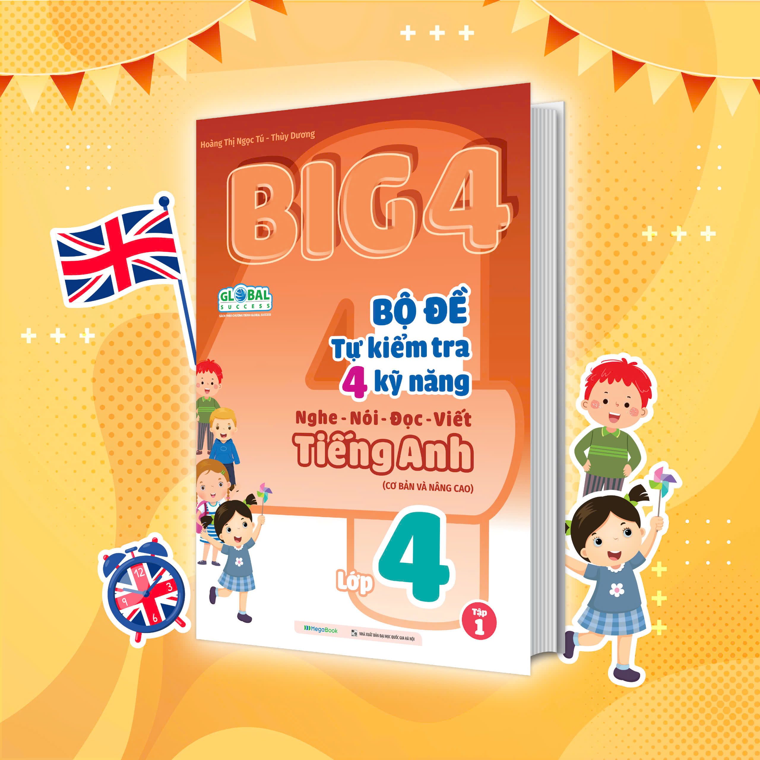 Big 4 Bộ Đề Tự Kiểm Tra 4 Kỹ Năng Nghe – Nói – Đọc – Viết (Cơ Bản và Nâng Cao) Tiếng Anh Lớp 4 viết theo chuẩn khung chương trình mới của Bộ Giáo Dục và Đào Tạo giúp các em học sinh lớp củng cố và phát triển toàn diện các kỹ năng: Nghe – Nói – Đọc – Viết Tiếng Anh.