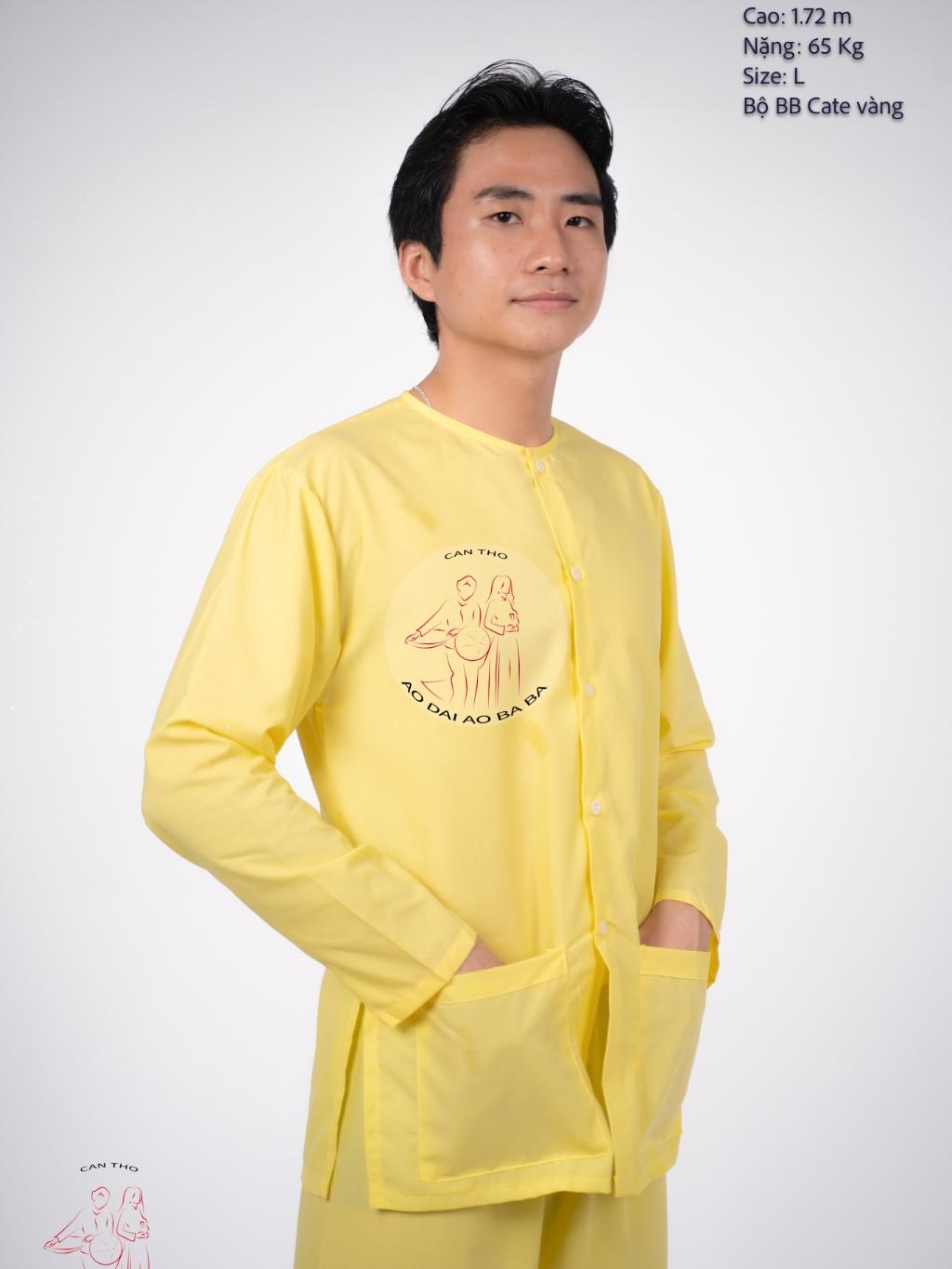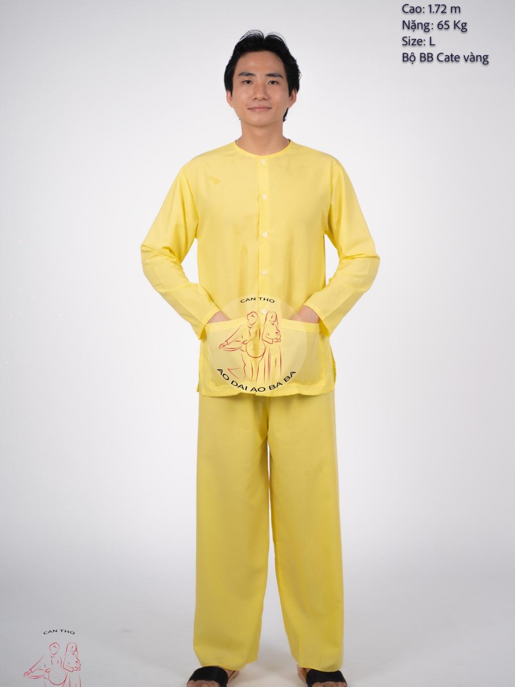 Bộ Bà Ba Nam Áo Vàng và Quần Nâu Vải Kate Mô tả chi tiết: • Chất liệu: Vải kate, thoáng mát, mềm mại và bền đẹp. • Màu sắc: Áo vàng- quần nâu đất