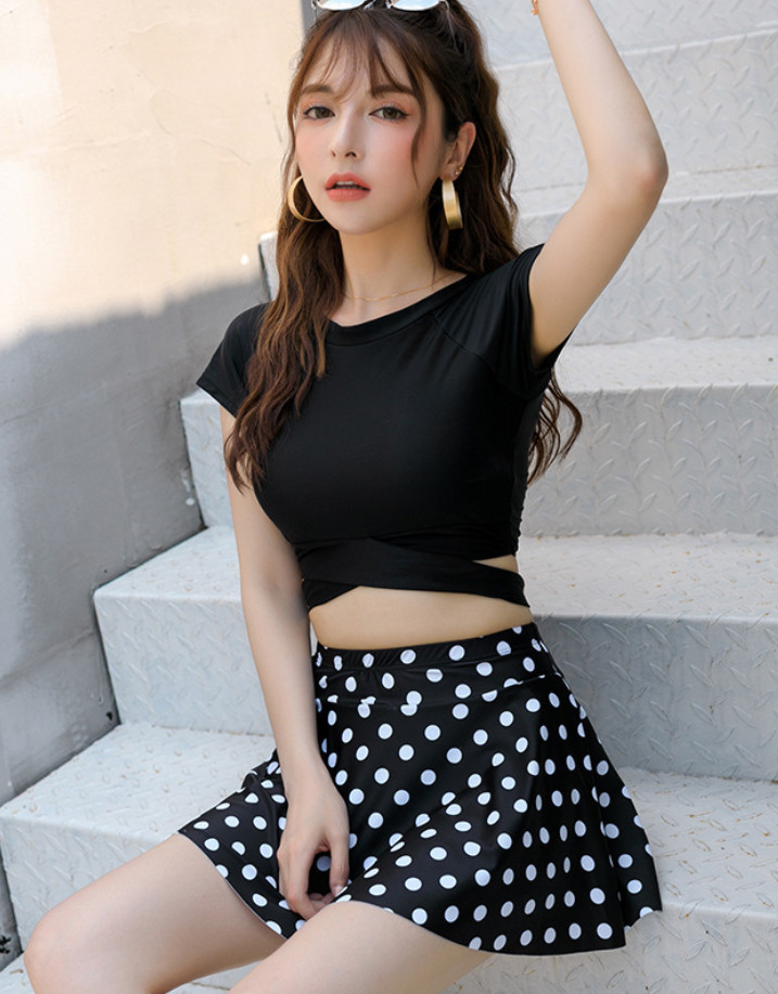 Bộ đồ bơi croptop tay dài phối váy ngắn, trẻ trung, nhẹ nhàng đi biển