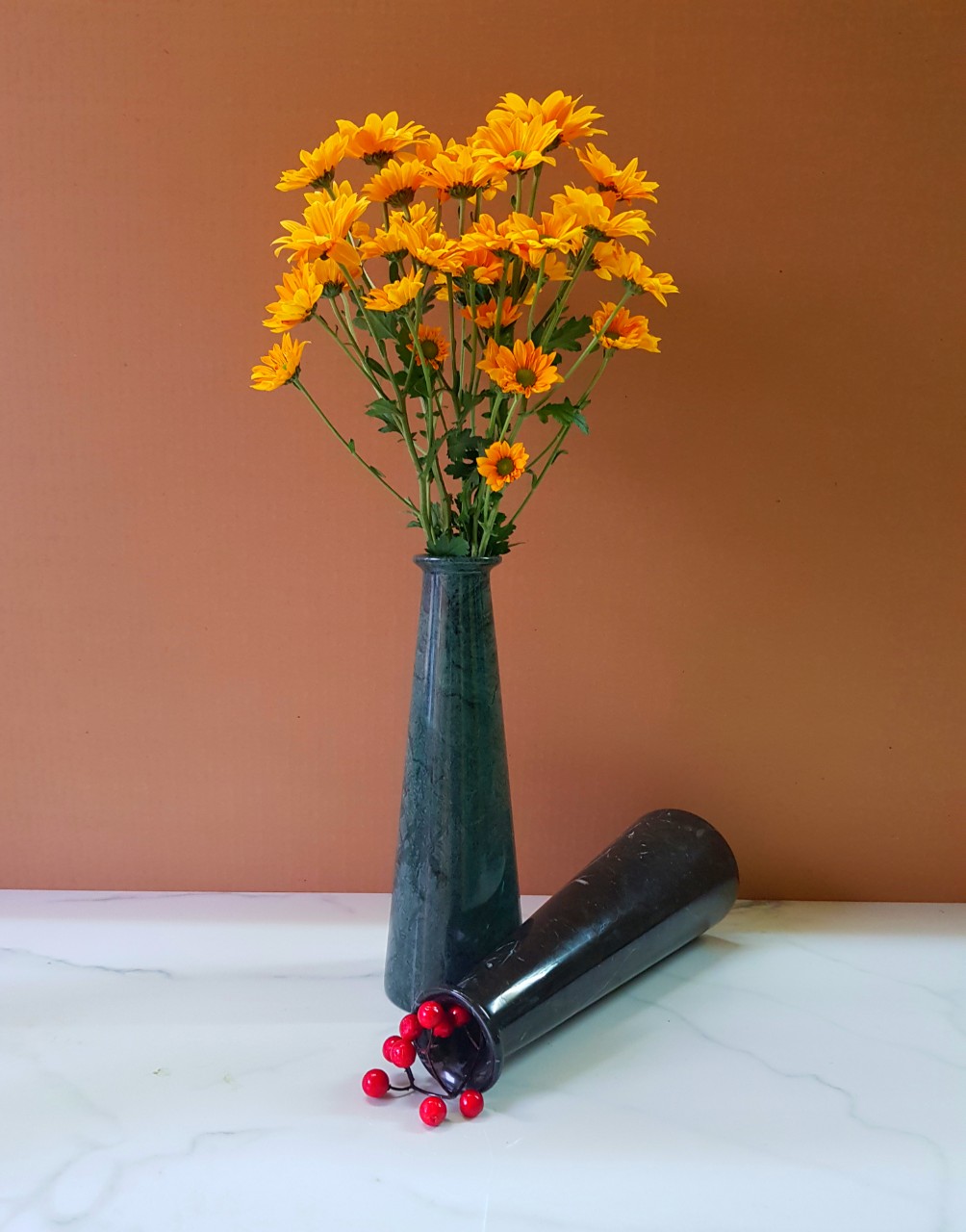 ✨Bình cắm hoa đá tự nhiên hiện đại màu Đen chỉ trắng BH29511D