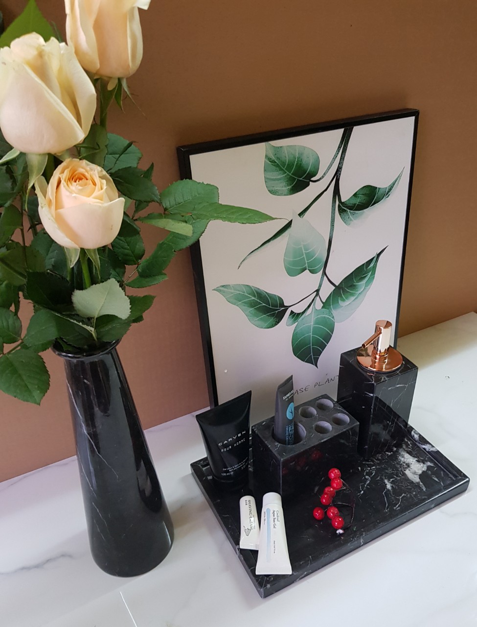 Tab trang trí đá cẩm thạch màu đen vân trắng #furniture #decoration